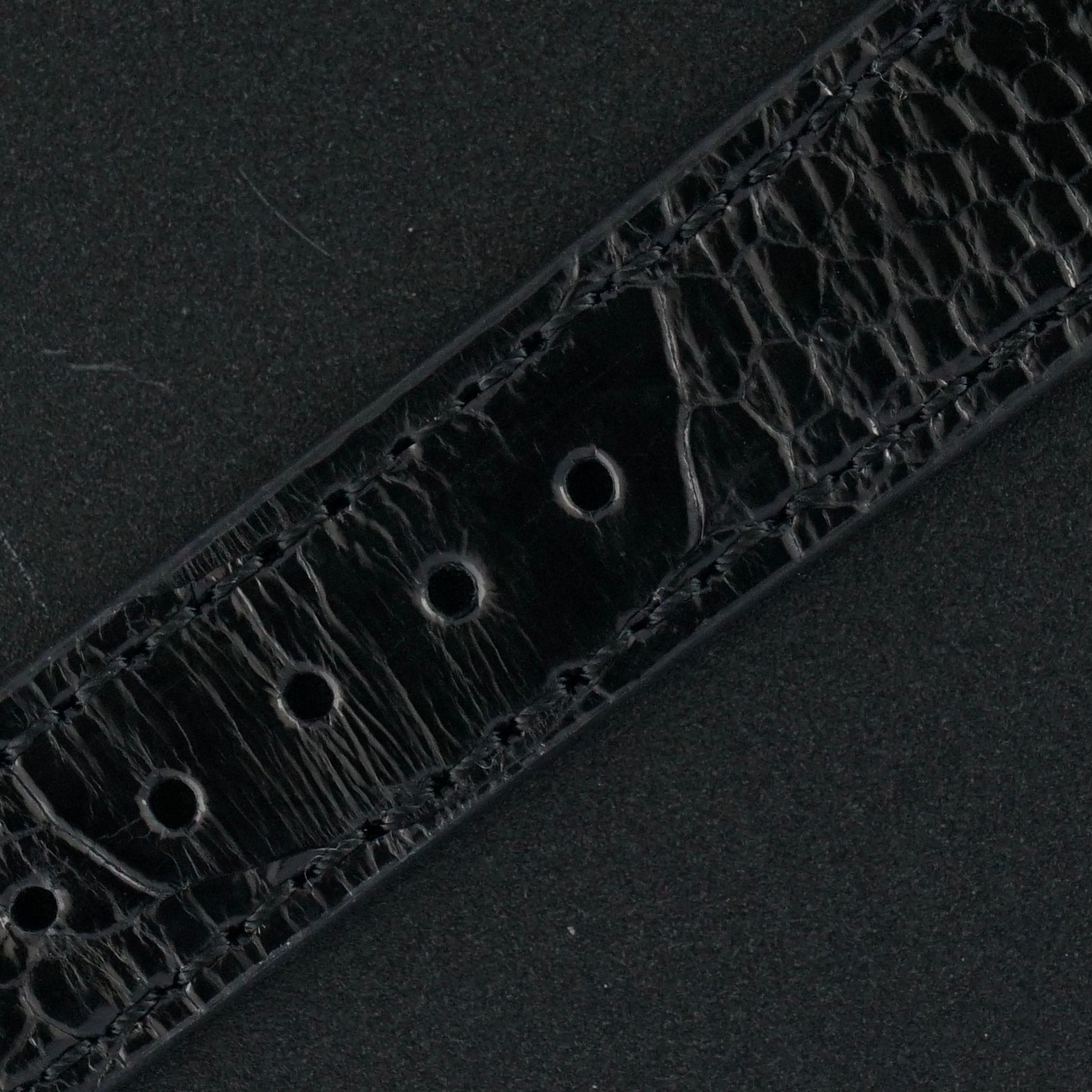 Band: Een zwarte leerband van graad III met een krokodillenmotief. (Past een pols van 12 tot 20cm)