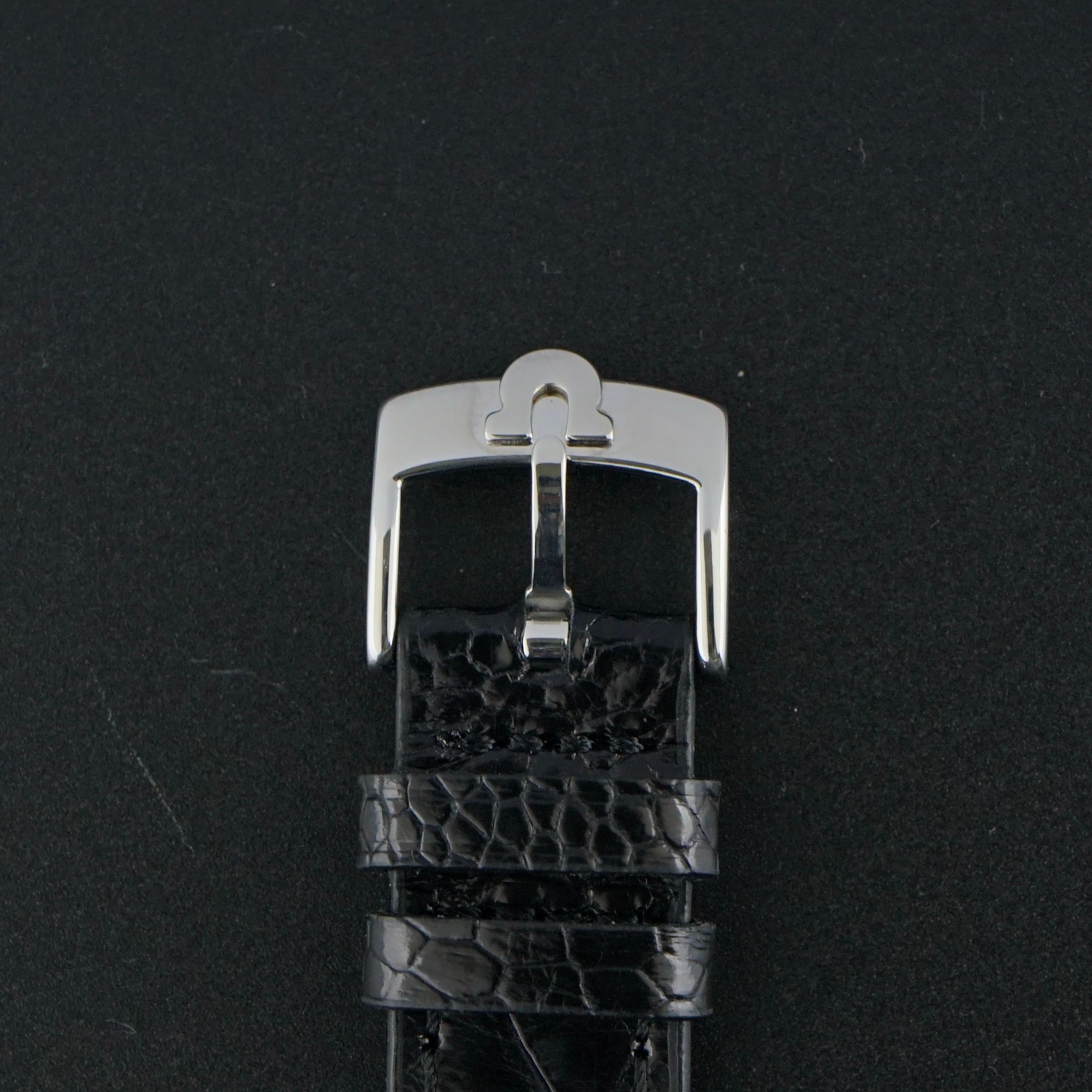 Strap: A black grade III leather strap with a crocodile motif. (Fits a 12 to 20cm wrist)