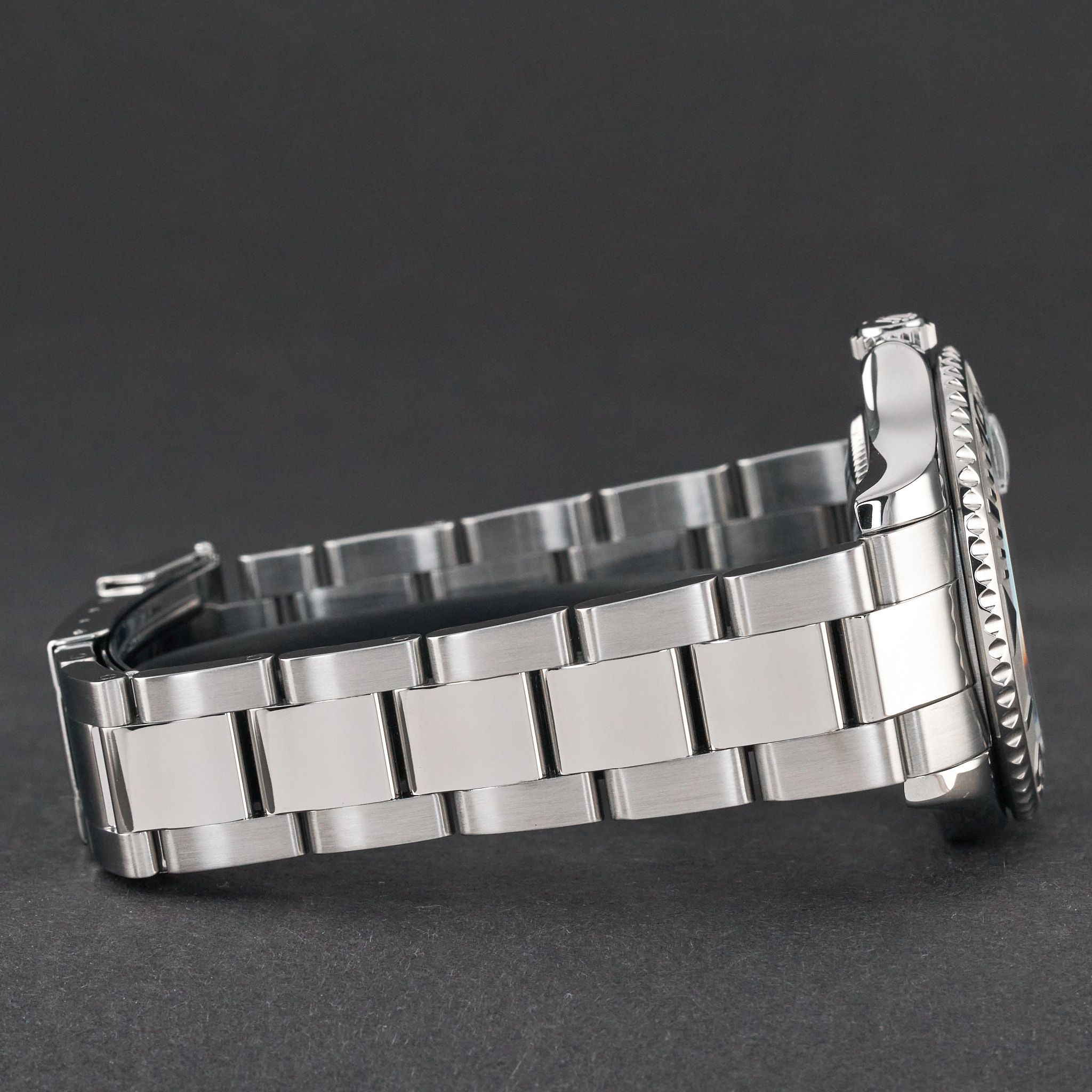 - Lichte gebruikssporen zoals haarlijntjes of kleine oppervlakkige krasjes. Kast, bezel en band behouden hun scherpe randen en oorspronkelijke vorm. Mogelijk professioneel gepolijst zonder de originele contouren aan te tasten. Mechanisch volledig functioneel.