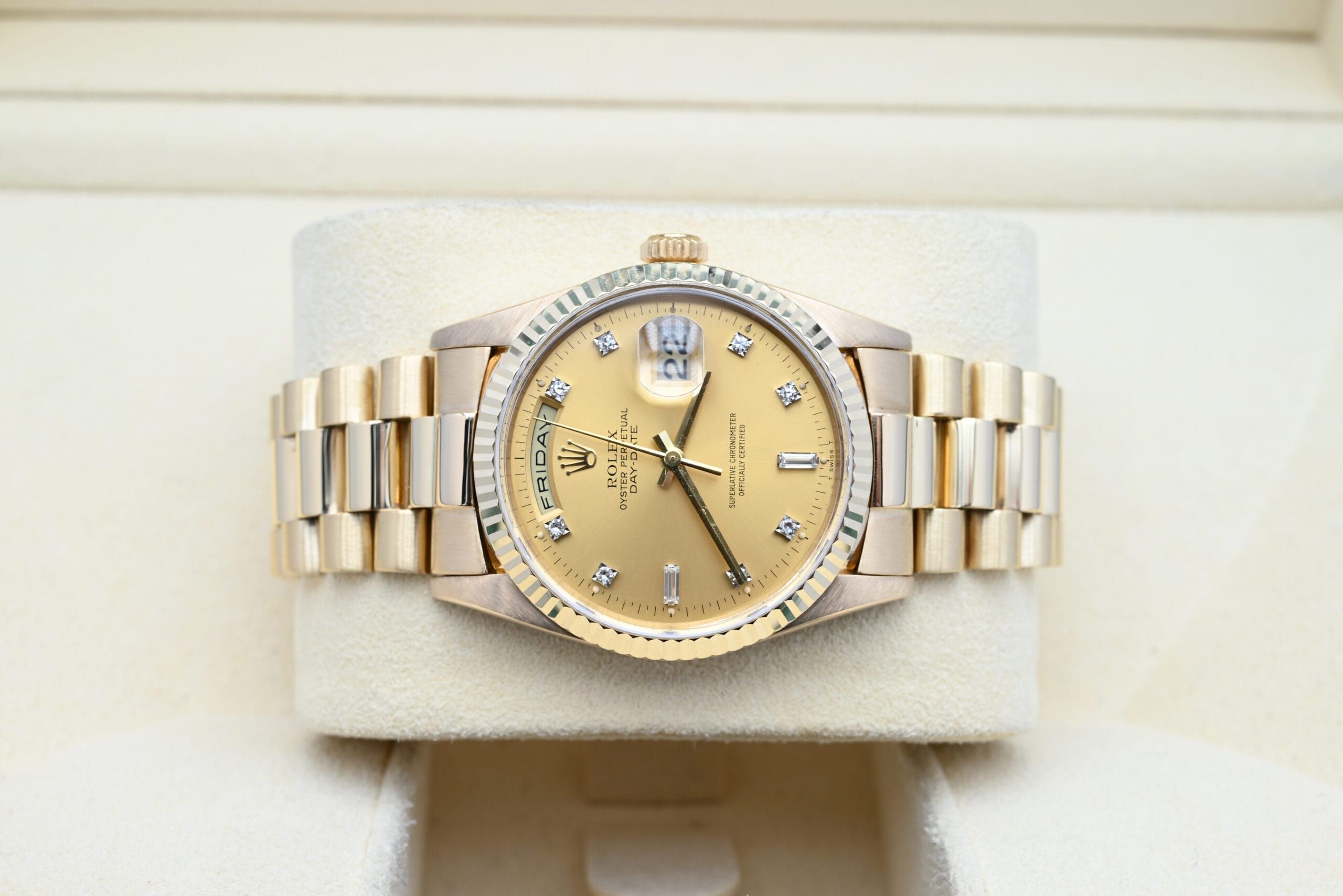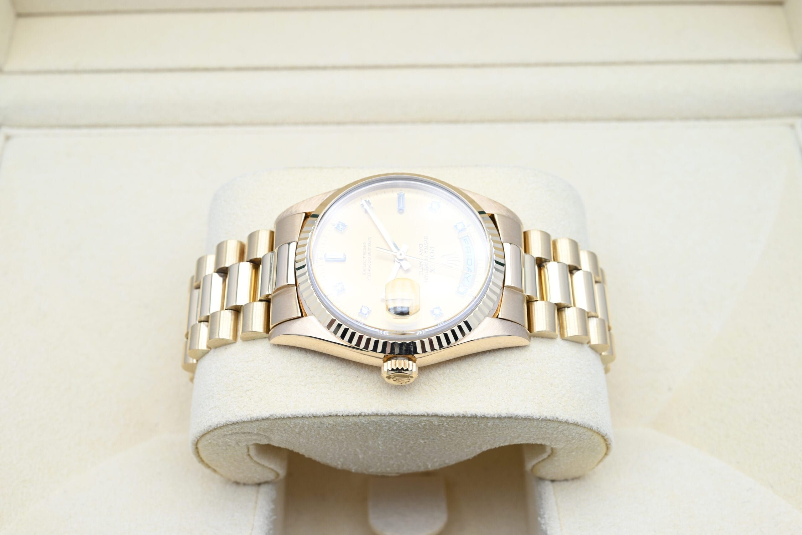 Rolex Day-Date 18238 from 1997 in excellent condition, including the original box.All of our watches have been thoroughly checked by our own watchmaker and serviced when needed.