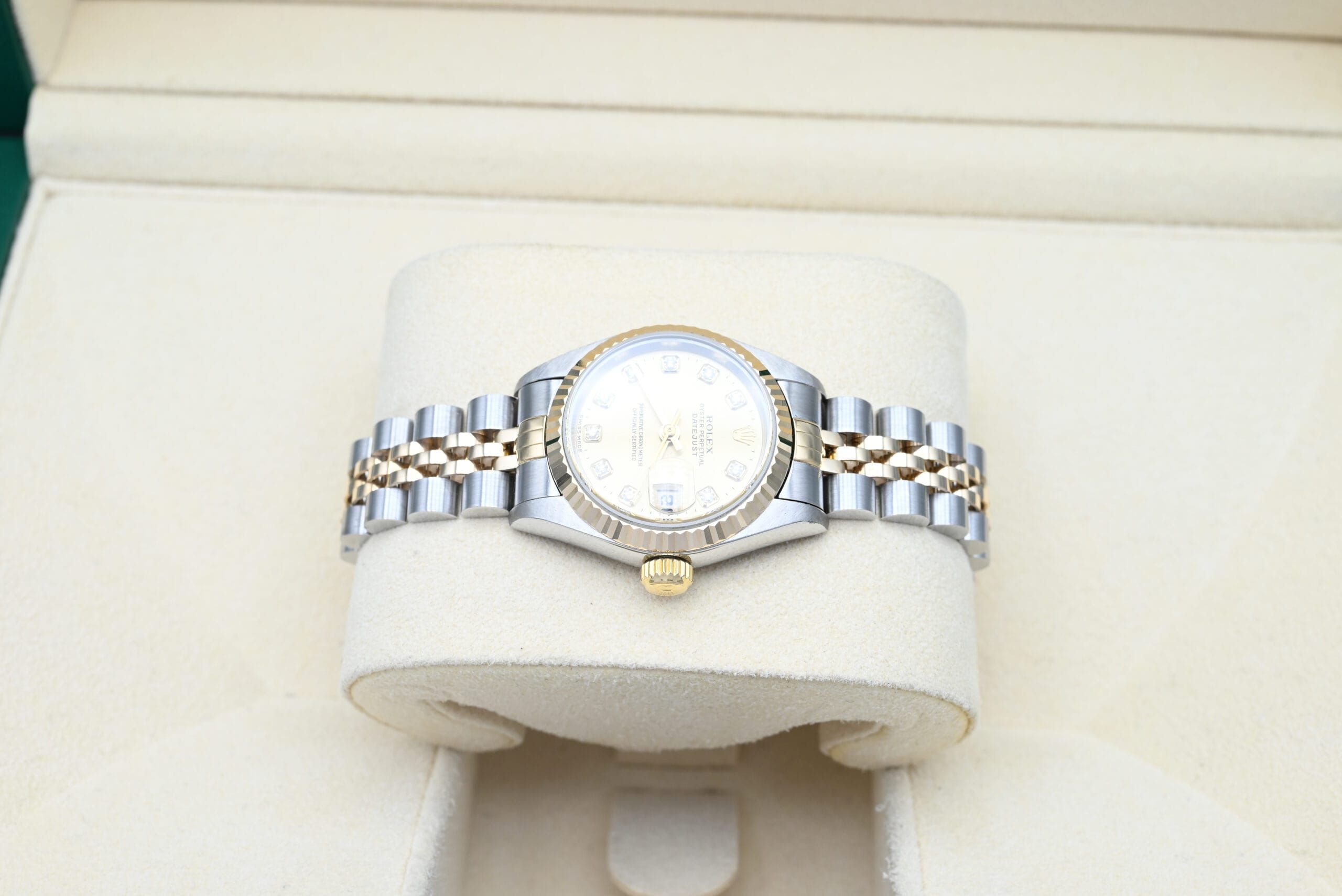 Rolex Lady-Datejust 69173 with the black diamond dial from 1994 in excellent condition, comes complete with the full set.All of our watches have been thoroughly checked by our own watchmaker and serviced when needed.
