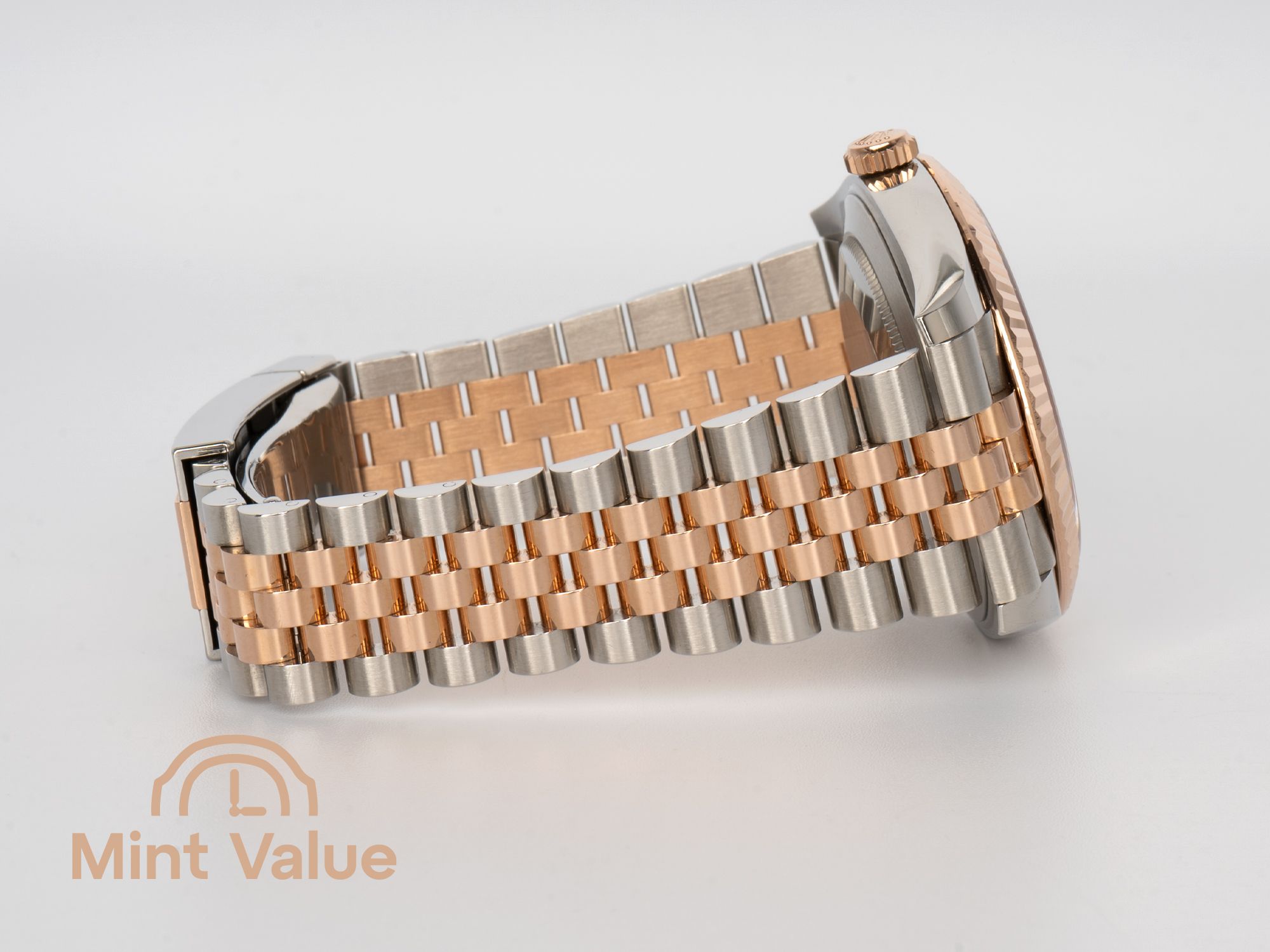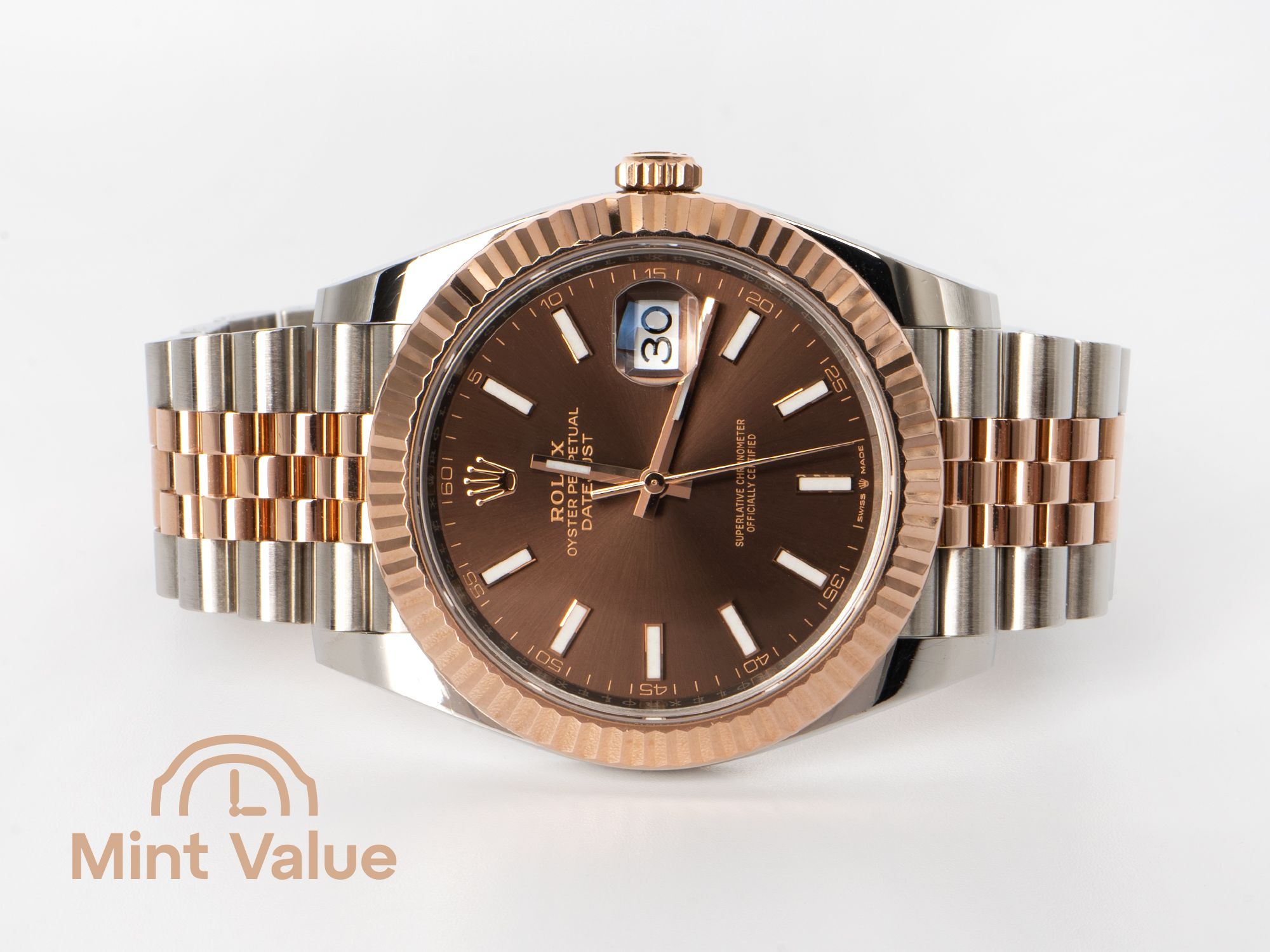 in Everose Rolesor has become one of the most admired contemporary Datejust configurations. Its chocolate sunburst dial paired with the brilliance of an Everose gold fluted bezel delivers a refined presence that feels unmistakably luxurious without ever being overstated.
