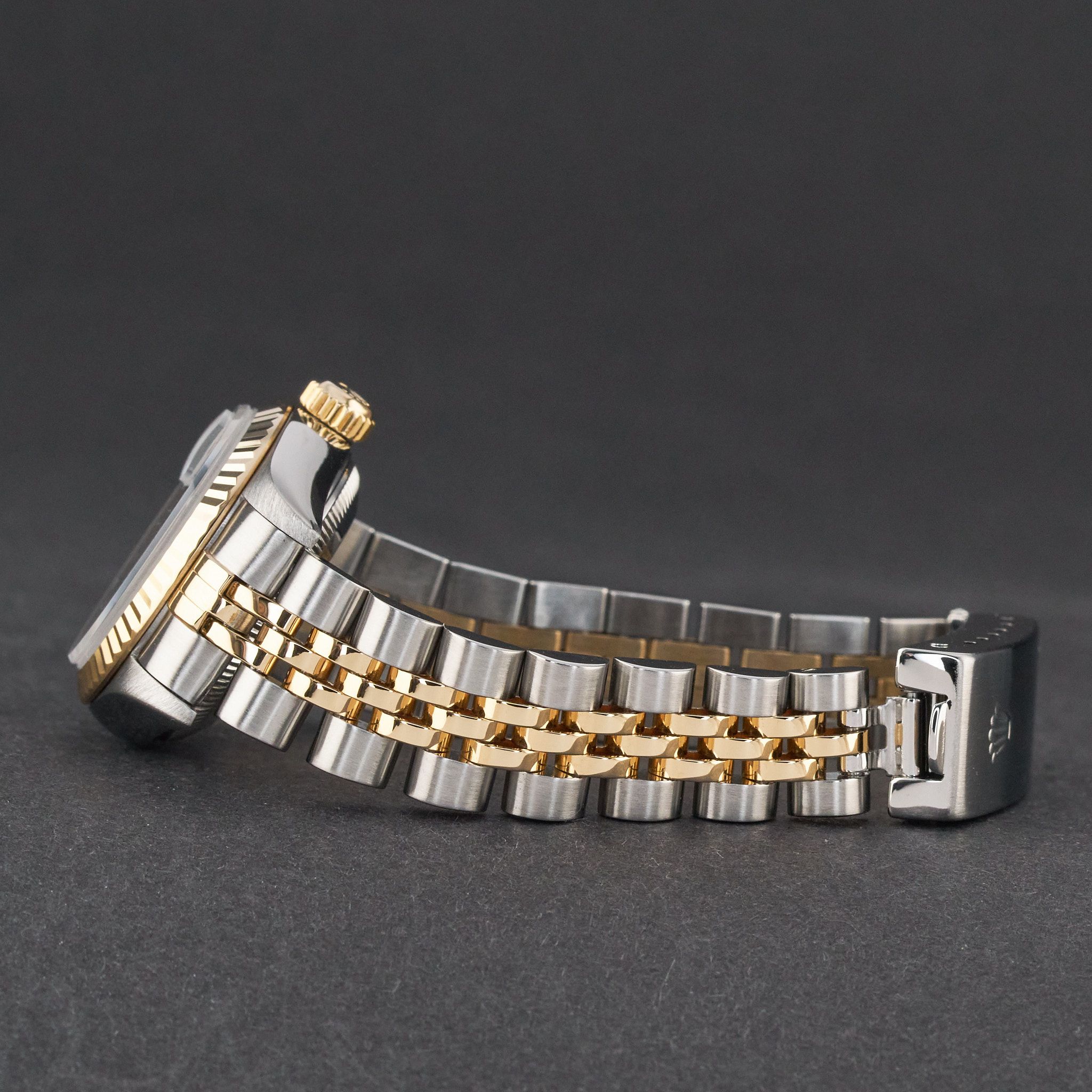 This Rolex Lady-Datejust 79173 features a Black dial and is crafted from 18K yellow gold and stainless steel, with a production year of 2000.Case No: P44XXXX