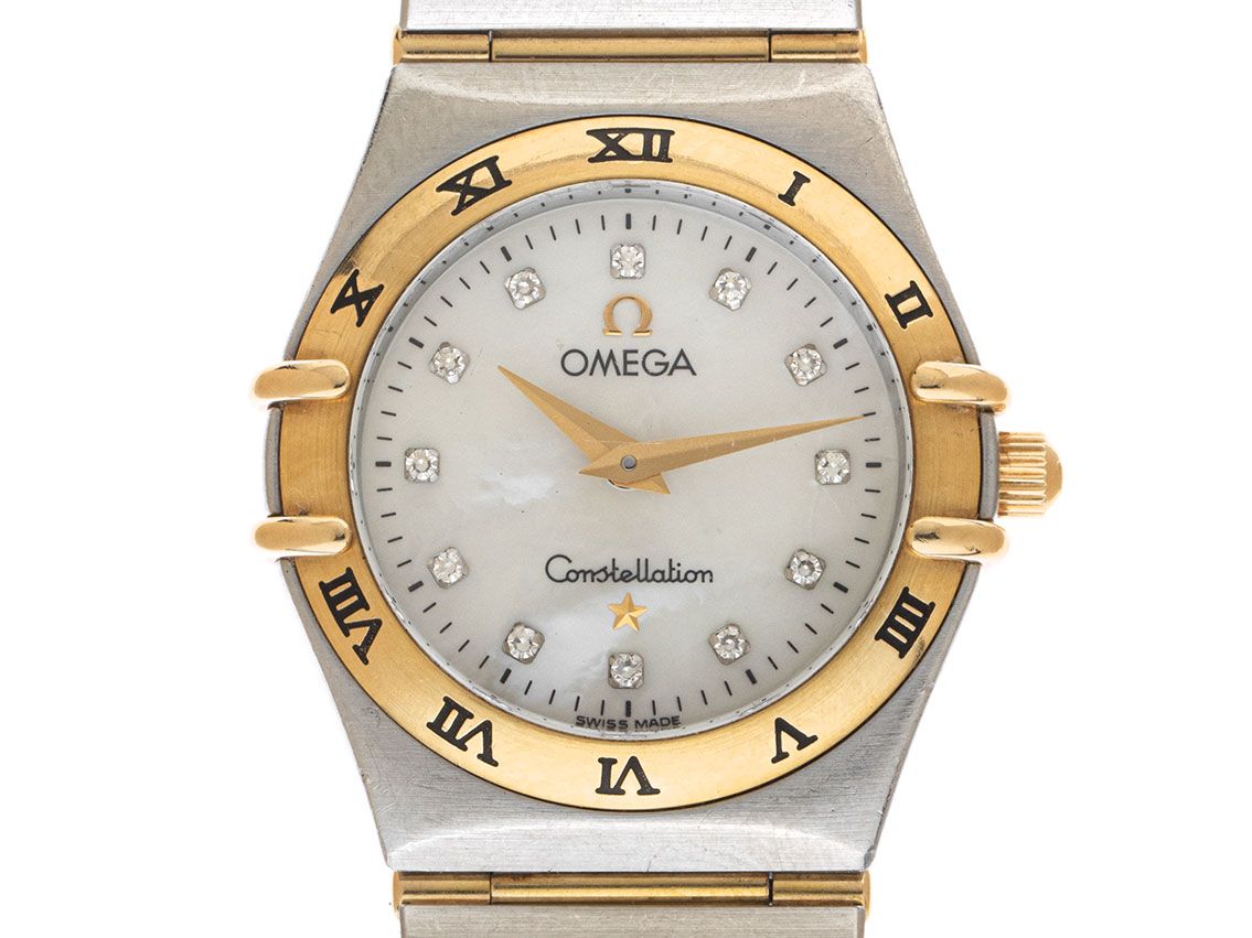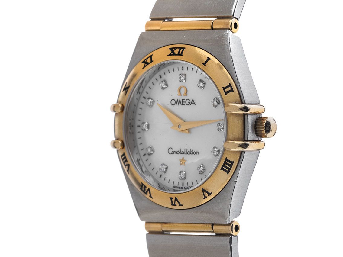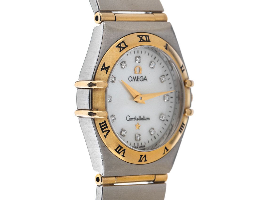 Omega Constellation Lady Staal Geelgoud Parelmoer Diamanten Quartz Armband Staal Geelgoud