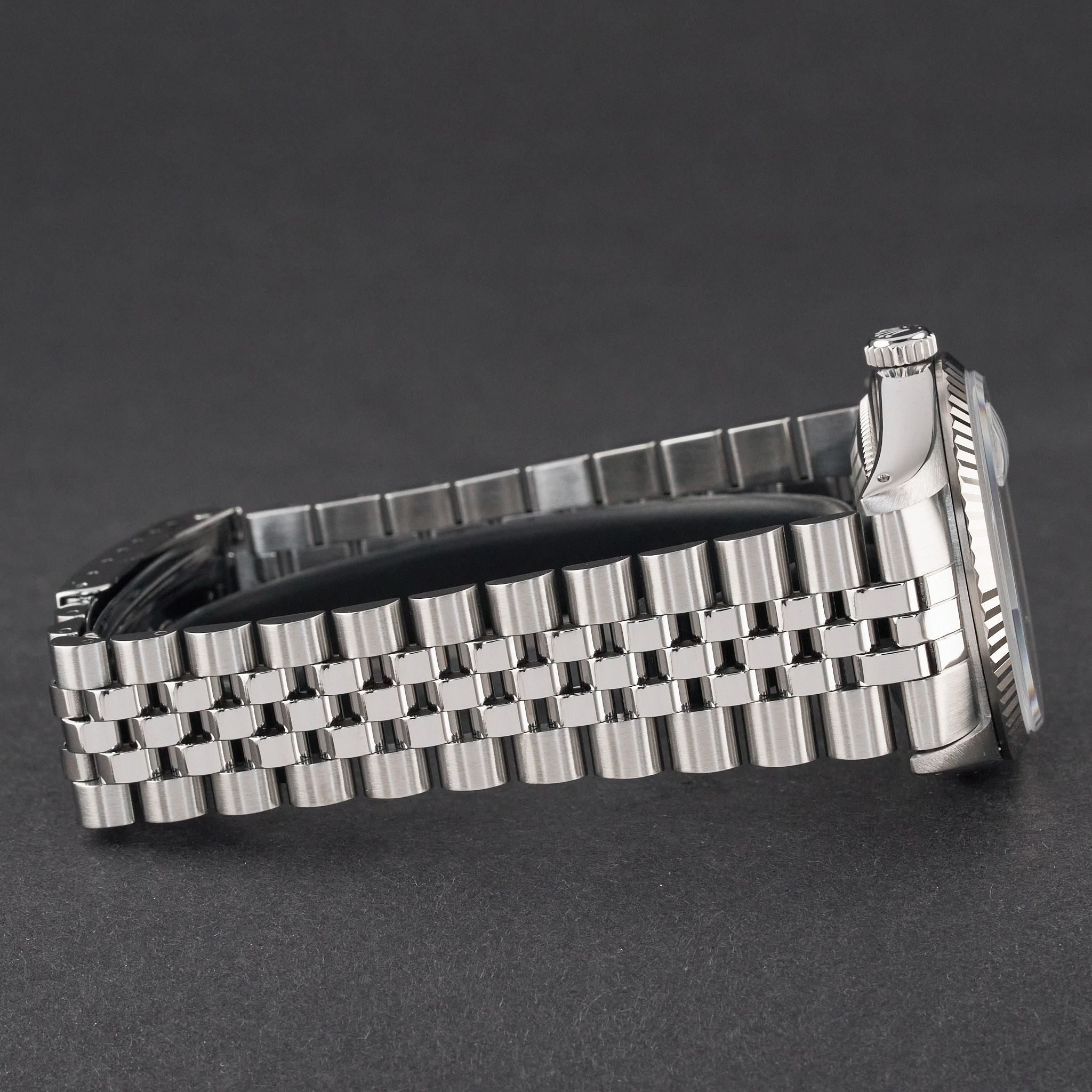 This Rolex Datejust 16234 features a Silver small diamond dial and is crafted from stainless steel, with a production year of 1989.Case No: L26XXXX