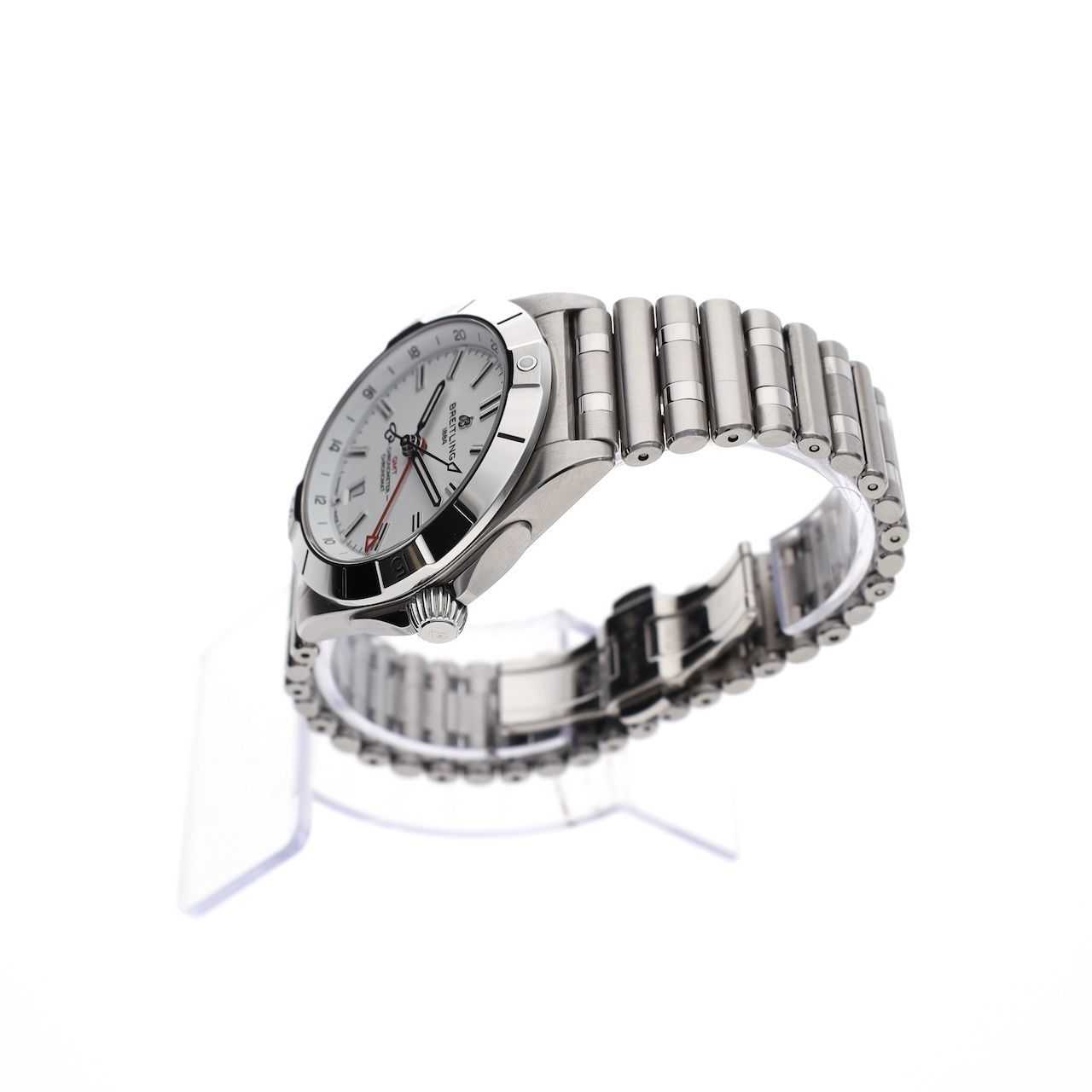 Een prachtige Breitling Chronomat GMT 40 met referentienummer A32398. Een hoogwaardige Zwitserse automatische herenhorloge. De Breitling Chronomat GMT 40 is het ideale horloge voor wie verfijnde luxe wil combineren met praktische functionaliteit. Met een kastdiameter van 40 mm, automatische beweging en handige GMT-functie (tweede tijdzone), combineert dit Breitling-horloge Zwitserse precisie met veelzijdige elegantie. Dit horloge uit 2023 verkeert in mintconditie en wordt geleverd als een prachtige complete set inclusief een Breitling garantie. De witte wijzerplaat zorgt voor een frisse, tijdloze uitstraling, terwijl de rode GMT-hand onmiddellijk de aandacht trekt en het horloge een sportieve touch geeft. Dankzij de automatische beweging en de solide bouwkwaliteit is de Chronomat GMT 40 niet alleen een prachtig stuk om te dragen, maar ook een betrouwbaar horloge op elk moment van de dag voor bijna elke gelegenheid. Dit horloge wordt geleverd als een complete set inclusief ons interne garantierapport en 1,8 jaar resterende garantie.