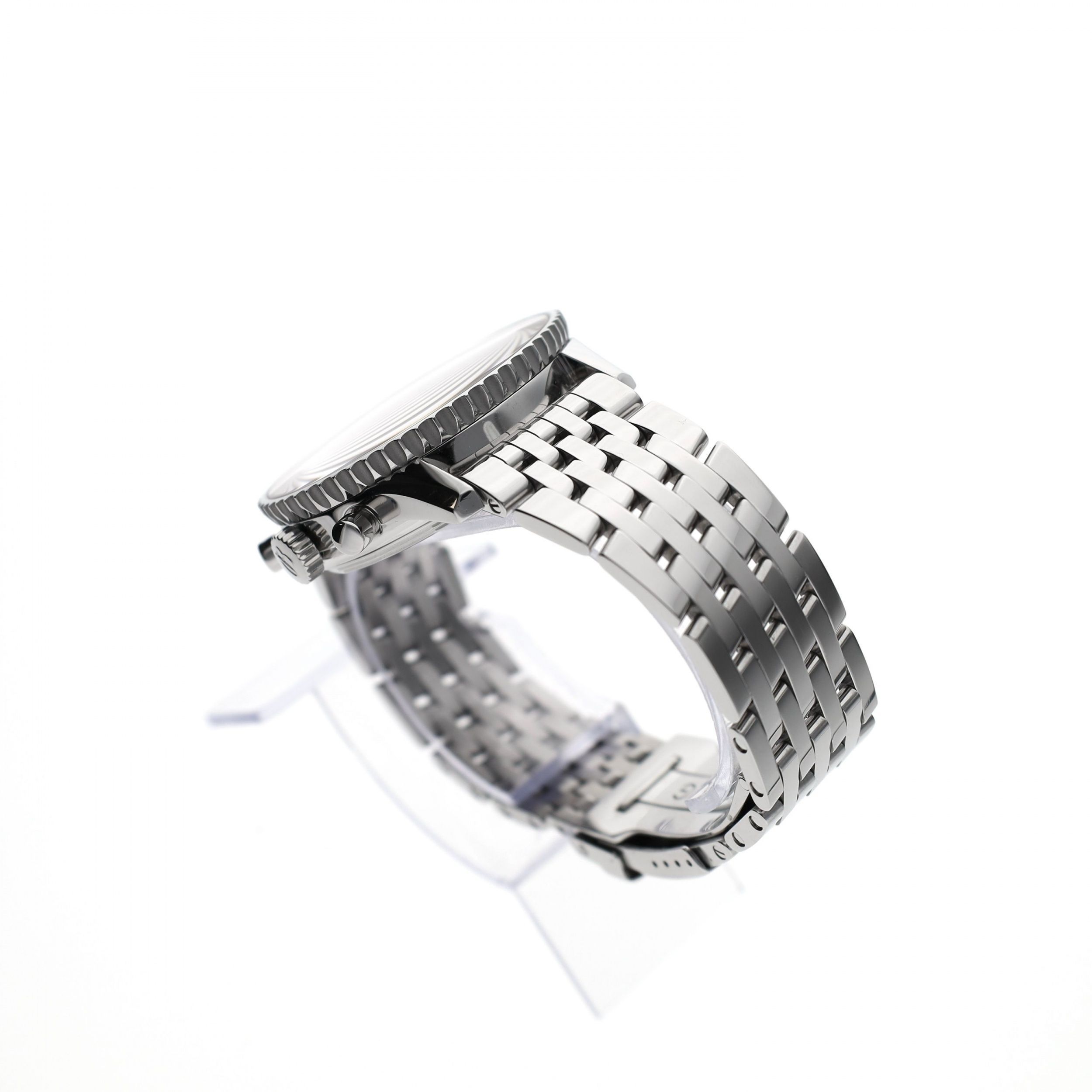 The Breitling Navitimer Montbrillant Edition (ref. A48330) is a remarkable version within the iconic Navitimer line. This model was produced for only a few years, making it a relatively rare appearance among aficionados of classic pilot watches. With a case diameter of 43mm, this watch has a powerful yet elegant presence on the wrist. The Navitimer is known for its distinctive design with (slide rule bezel), originally developed for pilots to perform calculations during flights. This Montbrillant Edition subtly references the historic Montbrillant street in La Chaux-de-Fonds, where Breitling was long located. Inside ticks the Breitling Caliber B48, a manually wound movement that perfectly emphasizes the classic charm of mechanical watchmaking. The manual winding mechanism contributes to the authentic experience that many collectors seek in this type of Navitimer. This piece dates from 2007 and is in very good condition. The watch is delivered with the original Breitling box, warranty papers, and booklets, complemented by our warranty report and 1-year warranty. A rare and characterful Navitimer that beautifully combines Breitling's rich aviation history with classic mechanical craftsmanship; a remarkable piece for the collector or enthusiast of authentic pilot watches.