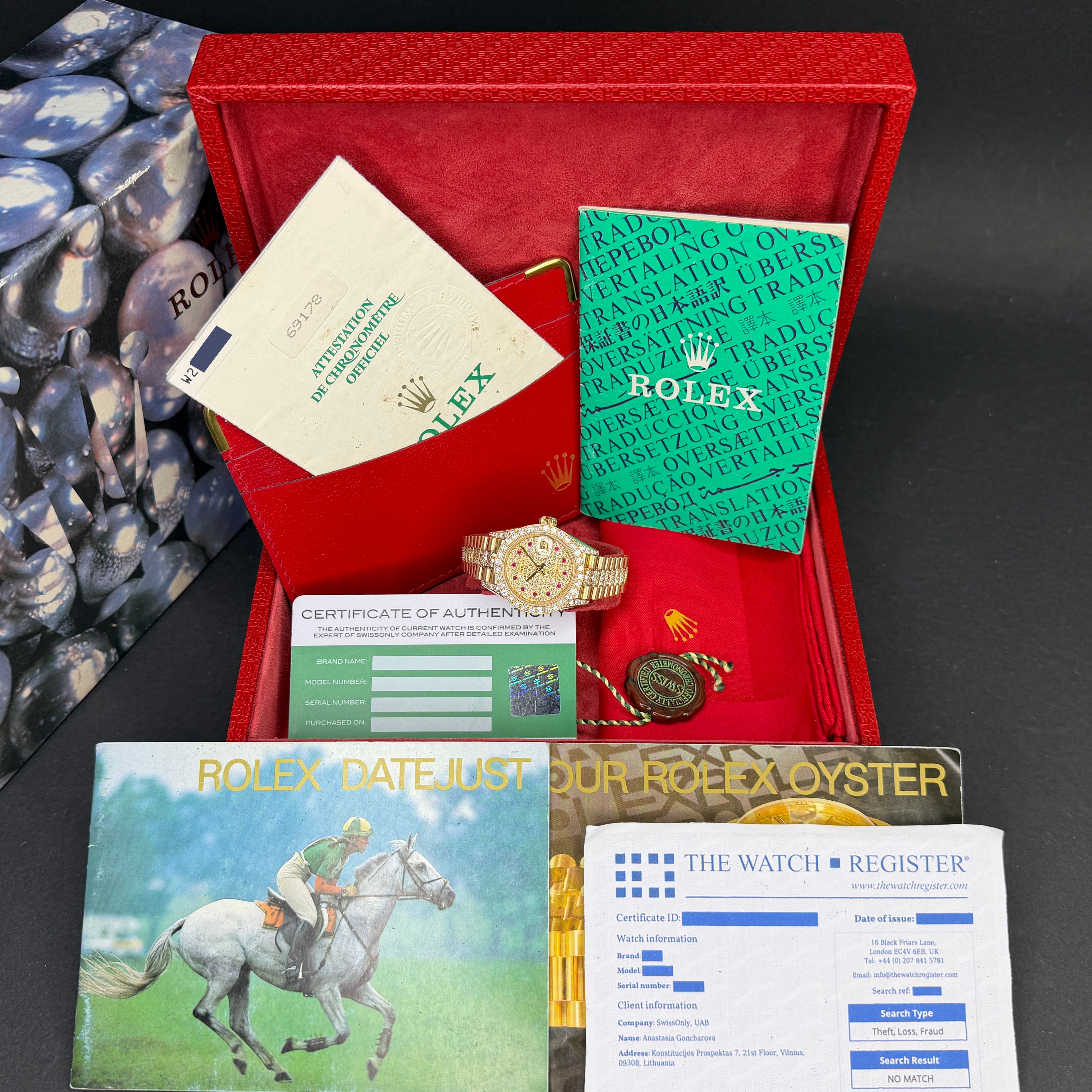 Rolex Lady Datejust, 69178, 26mm, 1995, Yellow gold, Pave Ruby Diamond dial, Fullset, 1y warranty