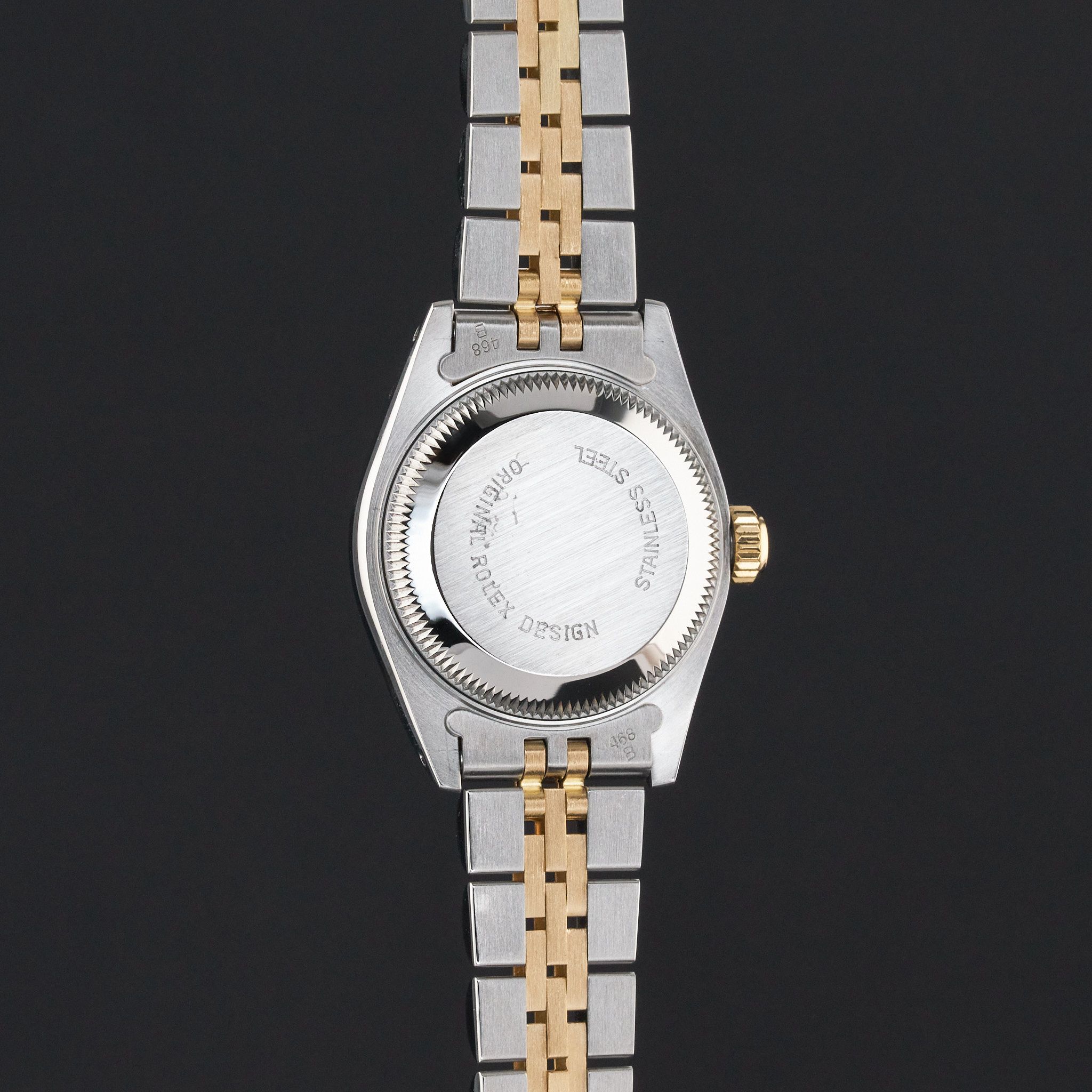 This Rolex Lady-Datejust 69173 features a Champagne dial and is crafted from 18K yellow gold and stainless steel, with a production year of 1985.Case No: 877XXXX