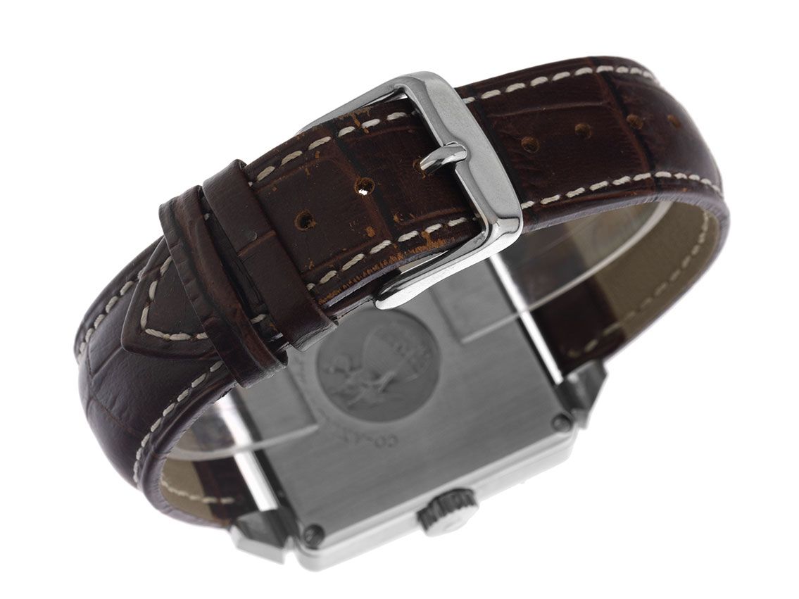 Kast van gepolijst en gesatineerd roestvrij staal, rechthoekig, kastafmetingen zonder kroon (L x B x H) 35 x 35 x 12,5 mm. Lünette van glad en gepolijst roestvrij staal. Horlogeband van bruin leer met siernaad, aanzetbreedte 20 mm, pin-buckle van roestvrij staal. Wijzerplaat wit met opgezette Romeinse cijfers van roestvrij staal, zwarte indexen en roestvrijstalen wijzers, evenals een geblauwd secondewijzer. Uurwerk automatisch, kaliber Omega. Weergave van uren, minuten en seconden via centrale wijzers met seconde-stop voor nauwkeurige tijdinstelling, datumaanduiding met snelle aanpassing op 3 uur - saffierglas krasbestendig. Kroon geribbeld met fabrikantlogo. Achterkant van roestvrij staal, 4-voudig geschroefd en gegraveerd. Gewicht van het horloge inclusief band 40 g, referentienummer: 4800.31.01, kastnummer: 80042XXX, ID: P268234000326H-5900, artikelnummer: 10000085103. Met gangcontrole en volledige uiterlijke opfrissing van februari 2026. Originele Omega doos met omdoos en garantiepapieren van februari 2001, evenals beschrijving, lederen etui en uithangstuk van het Watch Register van februari 2026, The Watch Register certificaat / zonder vermelding (internationale database voor verloren of gestolen horloges), Full Set. Superscherpe aanbieding, zeer zeldzaam verzamelobject, uit eerste hand. Zeer goede staat. Leveringstijd direct.