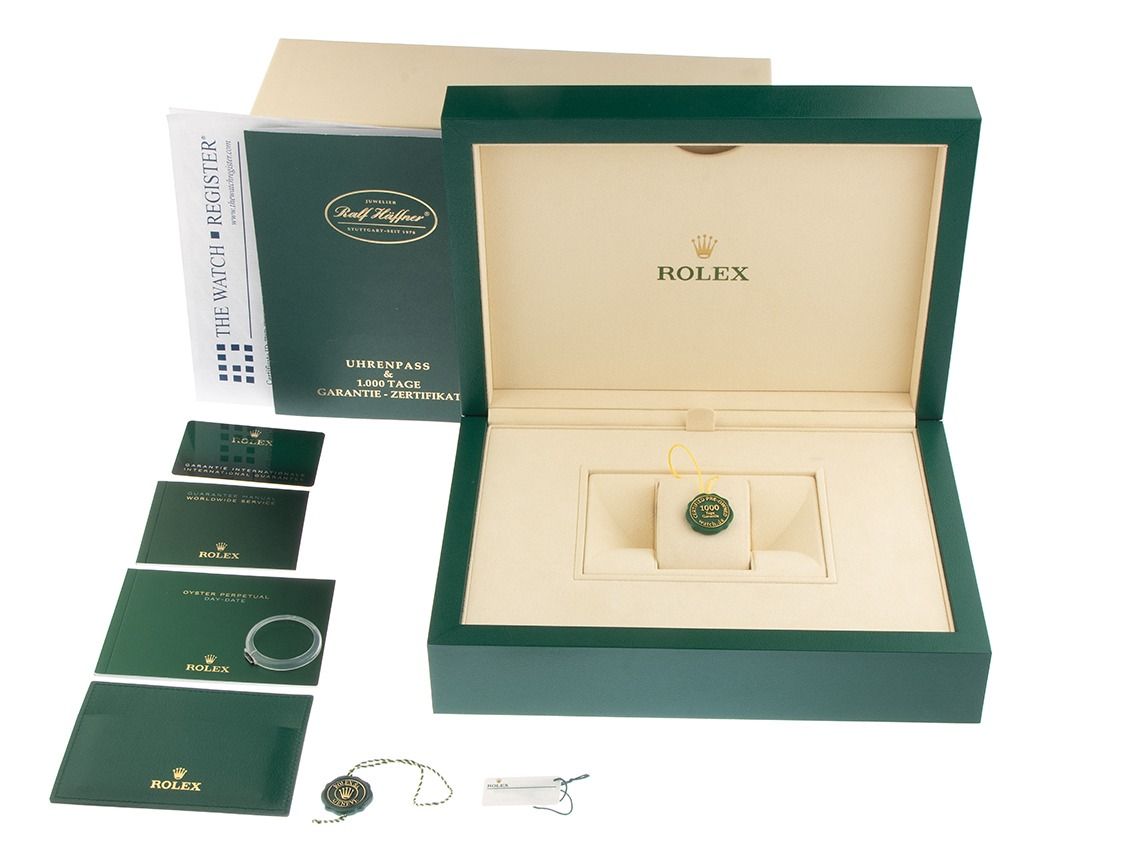 Inklusive certified pre owned Siegel / Uhrenpass mit einem Farbbild, der genauen Beschreibung sowie dem Wiederbeschaffungswert der Uhr über 95000,-€ und 1000 Tage Garantie ab Kaufdatum.