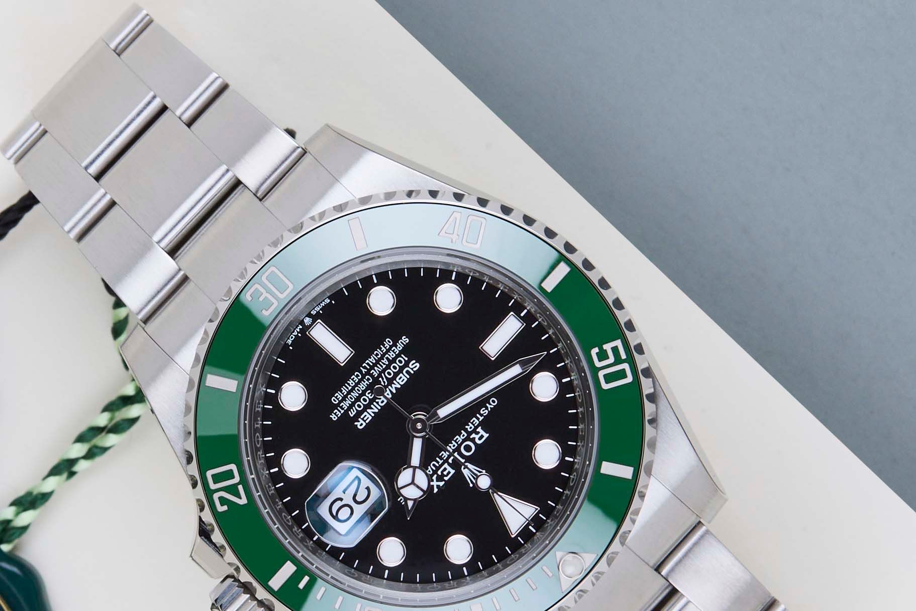 New & Unworn | 90% Stickered | Full Set | International Rolex Warranty Until February 2031The Rolex Submariner was introduced by Rolex in 1953. It is known for its durability, reliability, and precision, and it has become one of the most iconic and recognizable watch models in the world. This new series of Rolex Submariner was first introduced in the Summer of 2020. For the first time in Rolex's history, the Oyster case of the new Submariner has been enlarged to 41mm, up from 40mm.This Rolex Submariner Date reference 126610LV is equipped with the new-generation Calibre 3235. The new Calibre 3235 boasts an increased power reserve of 70 hours compared to the 48-hour power reserve of Calibre 3135.The watch is fully made out of stainless steel. Rolex uses 904L in its steel watches, which is an extremely resistant and highly polishable superalloy. This generation of the Submariner is equipped with a Chromalight dial which can be recognized by the blue lume. This Submariner Date comes with a black dial and green bezel, which can be derived from the reference 126610LV, Lunette Verte.This Rolex Submariner Date is in a New & Unworn condition and comes with the original Rolex Warranty Card and original box. Furthermore, the watch still has International Rolex Warranty until February 2031.