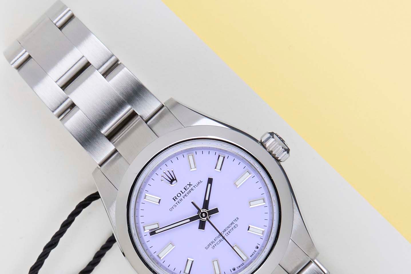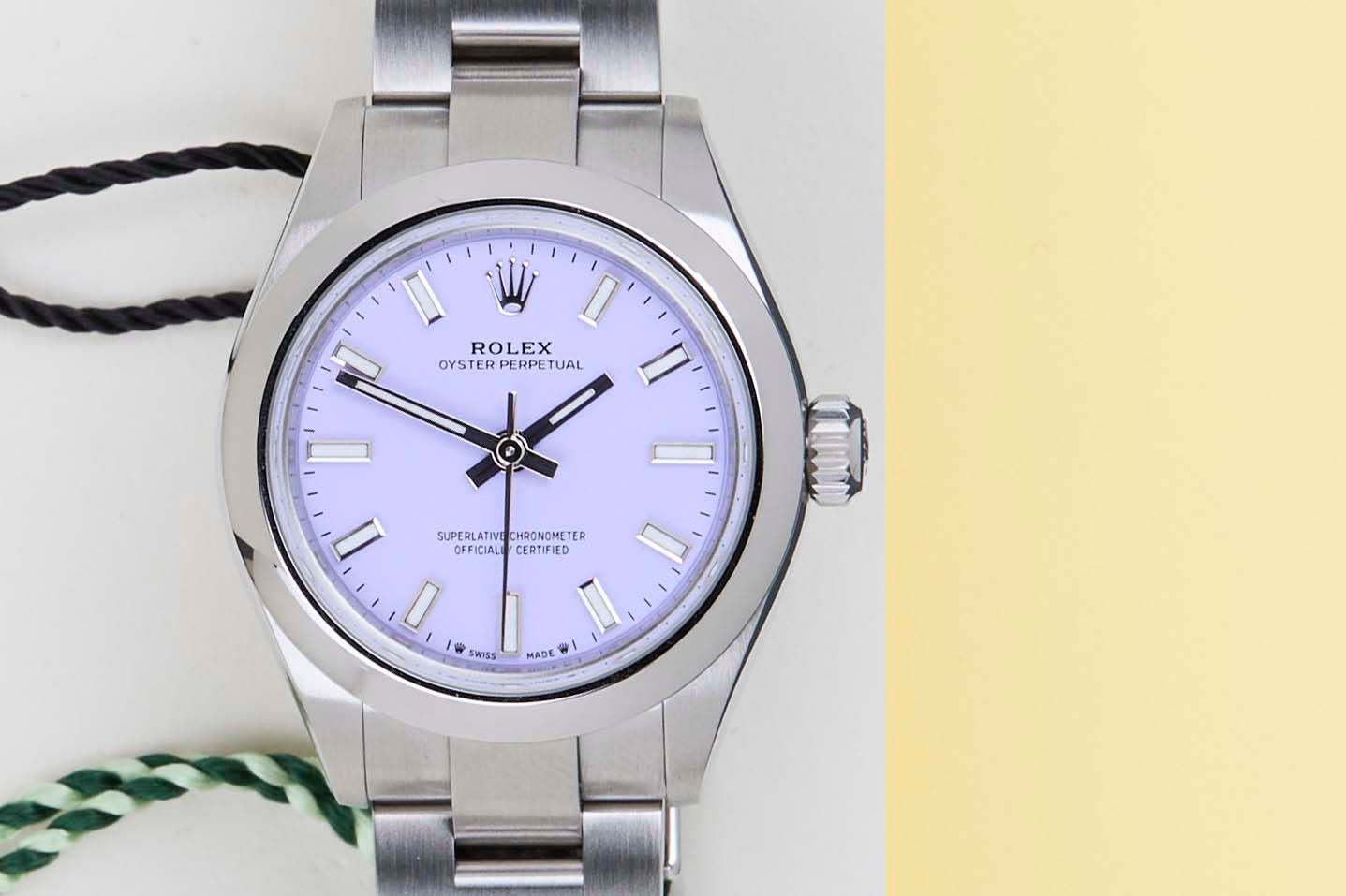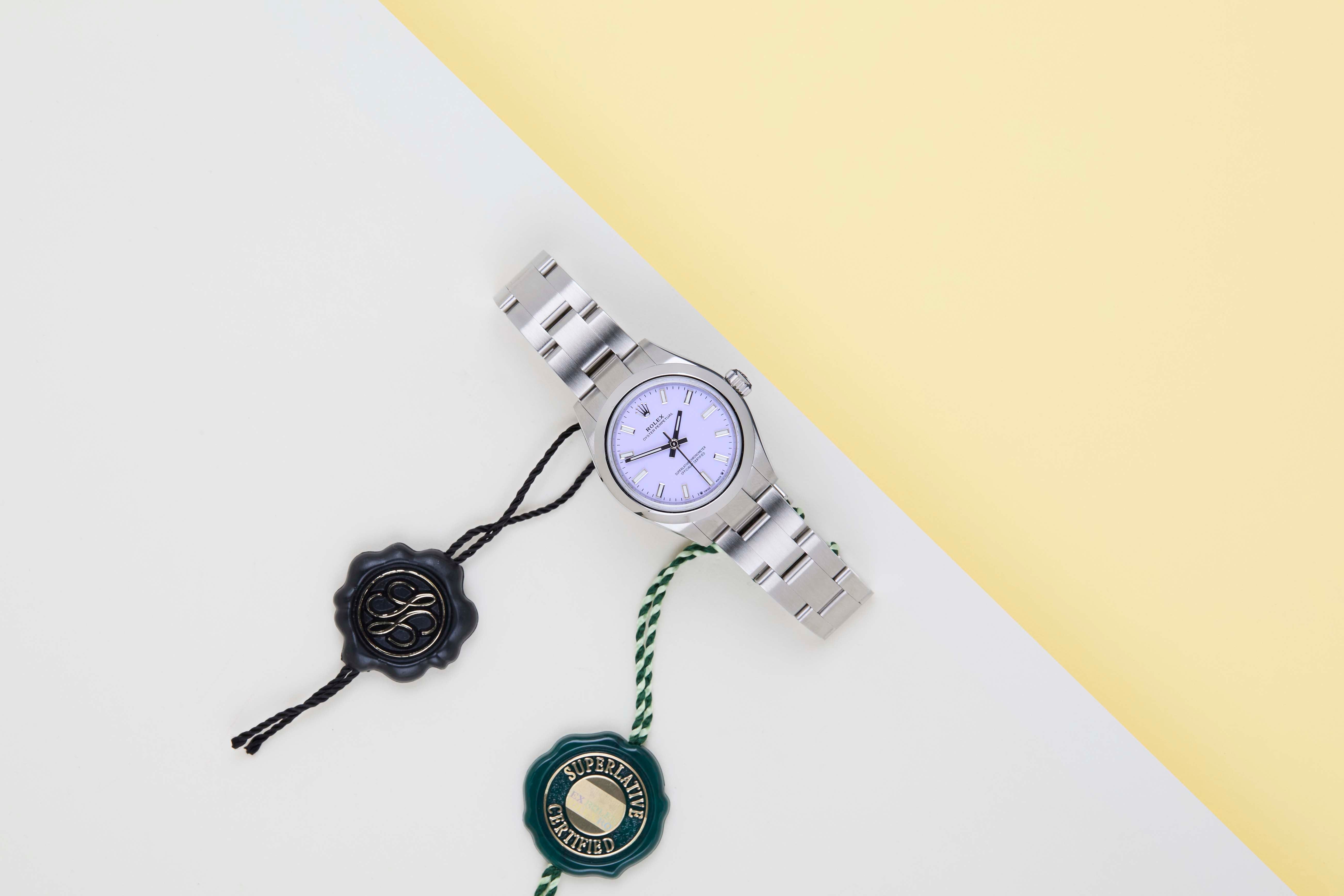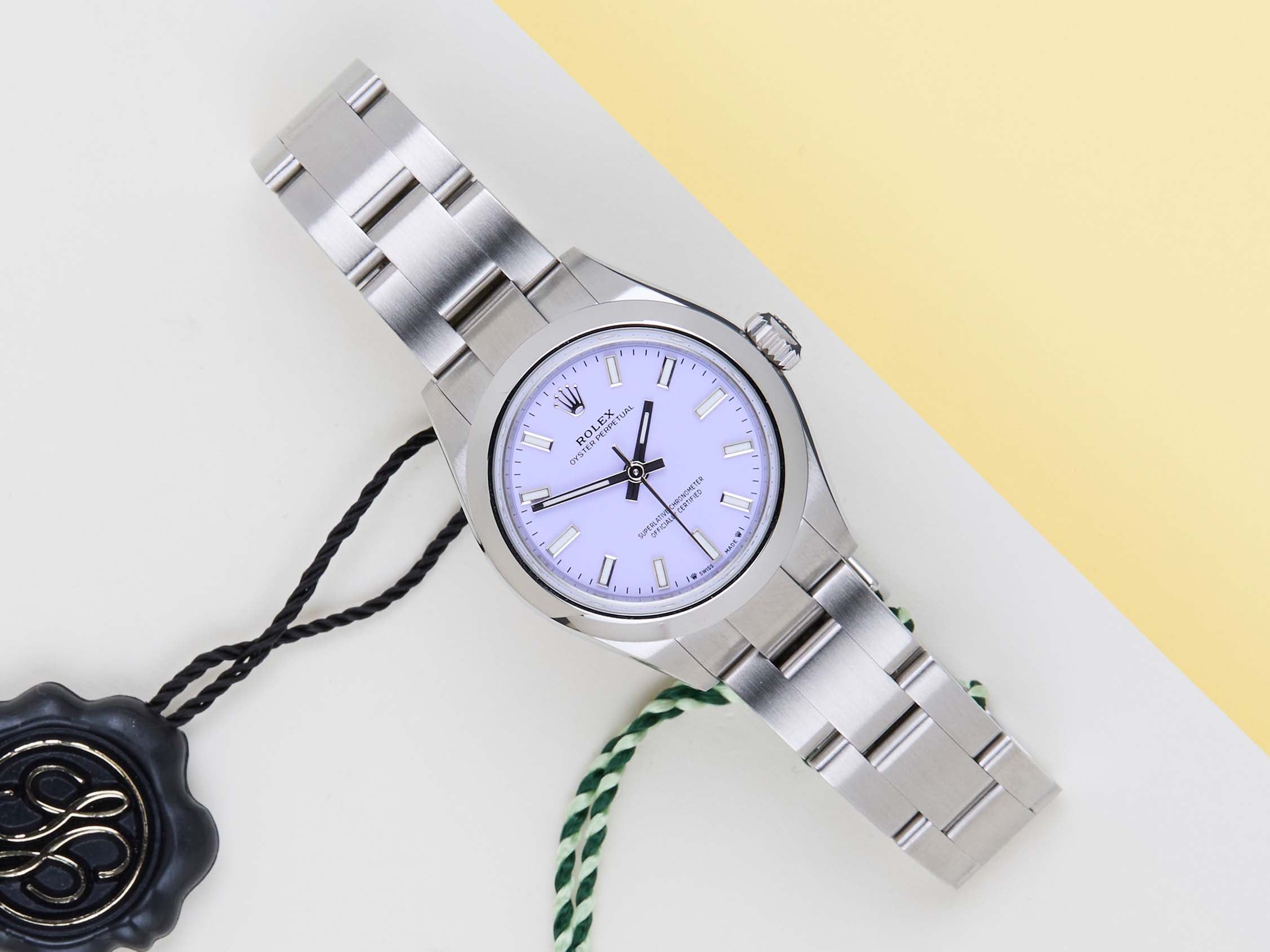 New & Unworn | Full Set | International Rolex Warranty until December 2030 The Rolex Oyster Perpetual was first introduced by Rolex in the 1930s. It is characterized by its water-resistant Oyster case and self-winding Perpetual movement. The Rolex Oyster Perpetual a simple, yet elegant timepiece that is suitable for both casual and formal wear.This Rolex Oyster Perpetual 26 'Lavender Dial' was sold for the first time in December 2025.The watch is fully made out of stainless steel. Rolex uses 904L in its steel watches, which is an extremely resistant and highly polishable superalloy.This Rolex Oyster Perpetual 26 is New & Unworn and comes with the original Rolex Warranty card and box. Furthermore, the watch comes with International Rolex Warranty until December 2030.