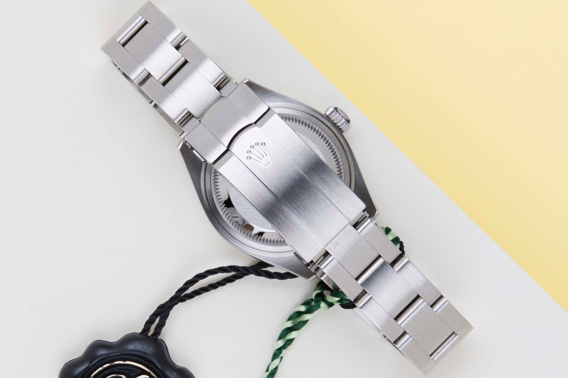 Deze Rolex Oyster Perpetual 26 'Lavender Dial' werd voor het eerst verkocht in december 2025. Het horloge is volledig gemaakt van roestvrij staal. Rolex gebruikt 904L in zijn stalen horloges, wat een extreem resistente en hoogglanzende superlegering is.