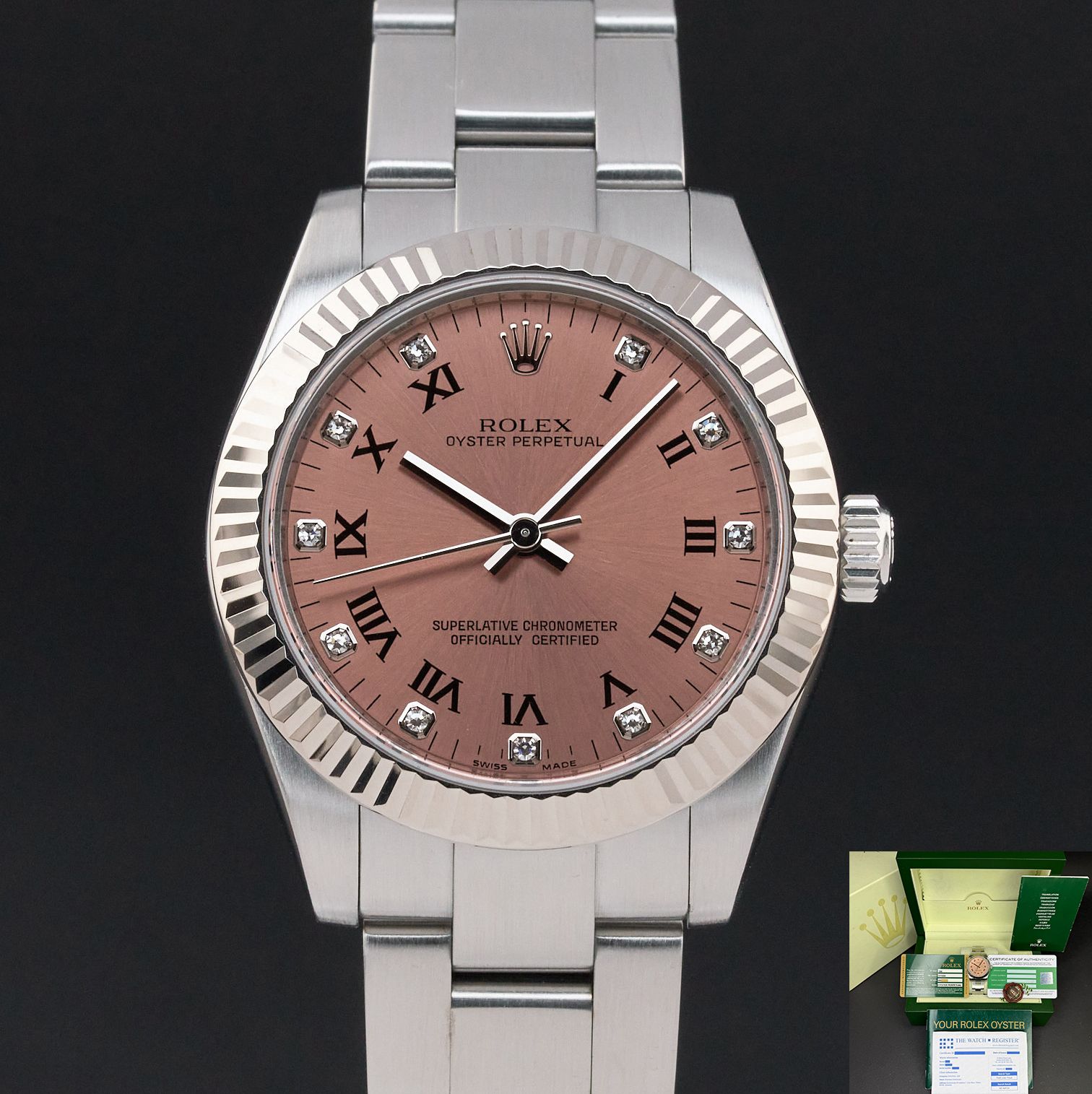 Rolex Oyster Perpetual, 177234, 31mm, 2008, Steel, Pink Roman Diamond dial, Fullset, 1y warranty