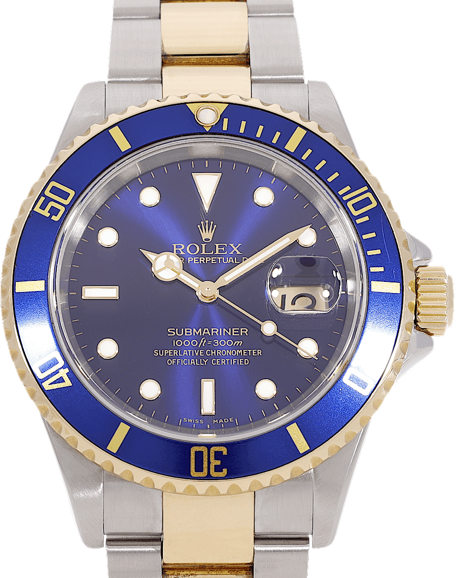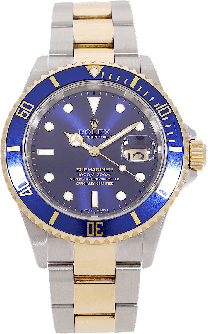 Rolex Submariner Date, Reference: 16613T, Gender: Male, Size: 40mm, Dial color: Blue, Strap material: Stainless Steel Yellow Gold, Movement: Automatic, Condition: Previously worn with some signs of usage. The movement is flawless and the case has been cleaned. watch tested to ensure full functionality. An inspection by our certified watchmakers guarantees its authenticity., Documents: Chronext Certificate