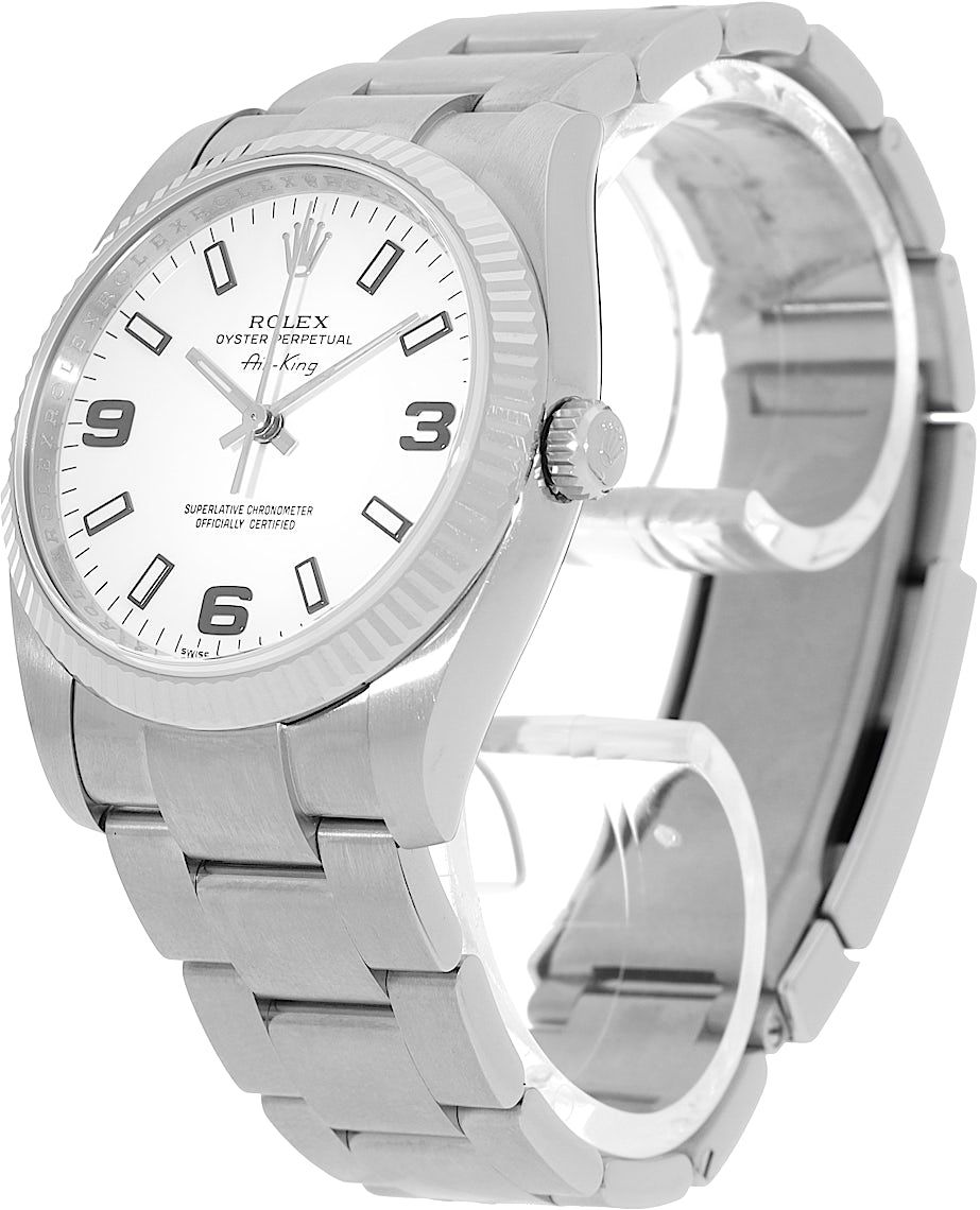 Rolex Air-King, Referentie: 114234 70190, Geslacht: Unisex, Maat: 35mm, Wijzerplaatkleur: Wit, Bandmateriaal: Roestvrij staal, Uurwerk: Automatisch, Jaar: 2010, Staat: Nieuw en ongebruikt. Een inspectie door onze gecertificeerde horlogemakers garandeert authenticiteit., Documenten: Originele papieren, CHRONEXT Certificaat