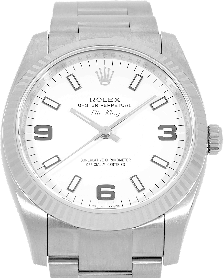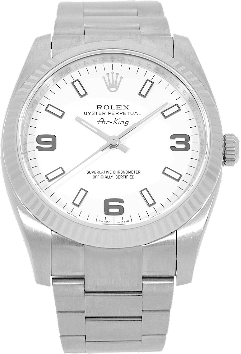 Rolex Air-King, Reference: 114234 70190, Gender: Unisex, Size: 35mm, Dial color: White, Strap material: Stainless Steel, Movement: Automatic, Year: 2010, Condition: New and unworn. An inspection by our certified watchmakers guarantees authenticity., Documents: Original papers, CHRONEXT Certificate