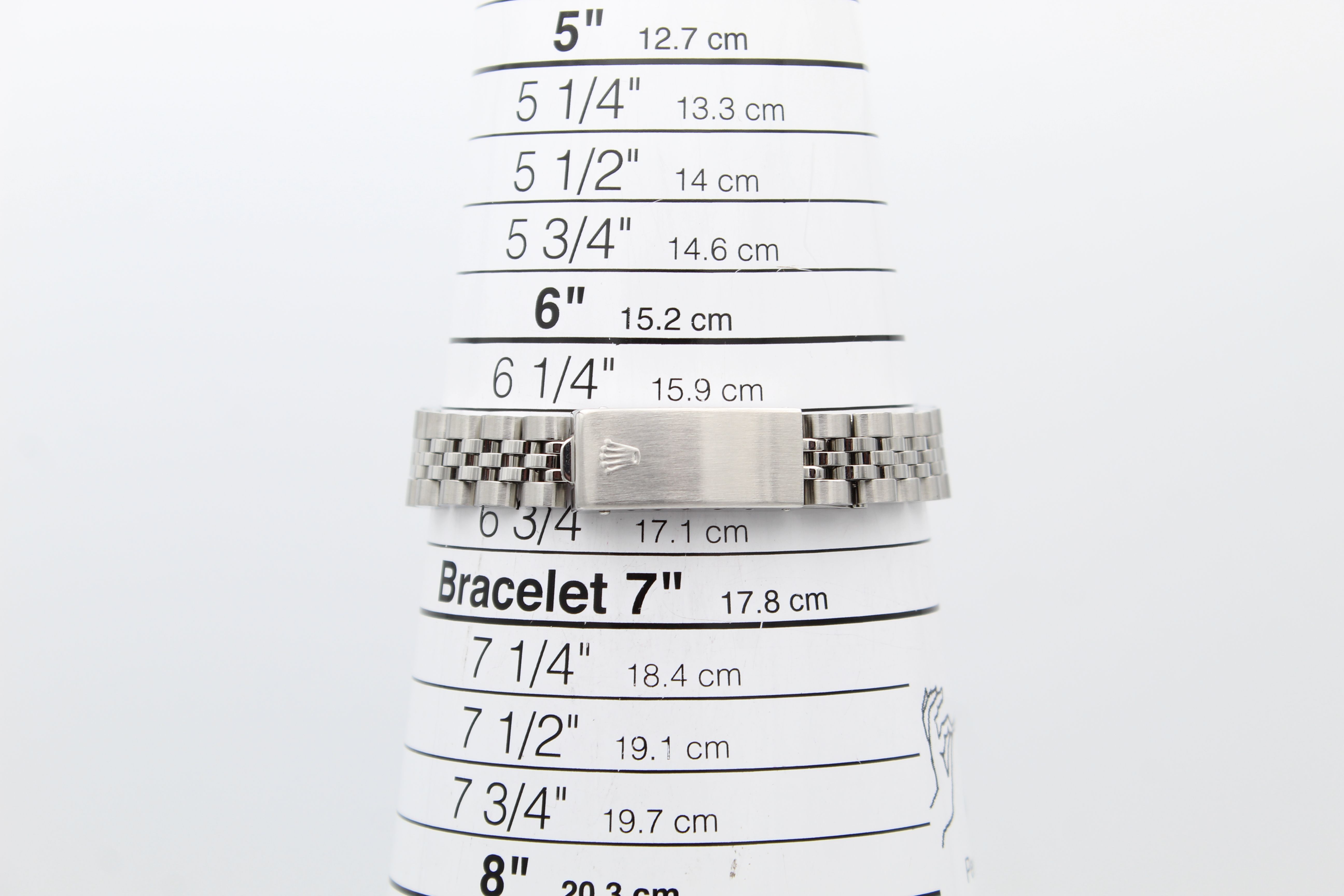 - Lichte gebruikssporen zoals haarlijntjes of kleine oppervlakkige krasjes. Kast, bezel en band behouden hun scherpe randen en oorspronkelijke vorm. Mogelijk professioneel gepolijst zonder de originele contouren aan te tasten. Mechanisch volledig functioneel.
