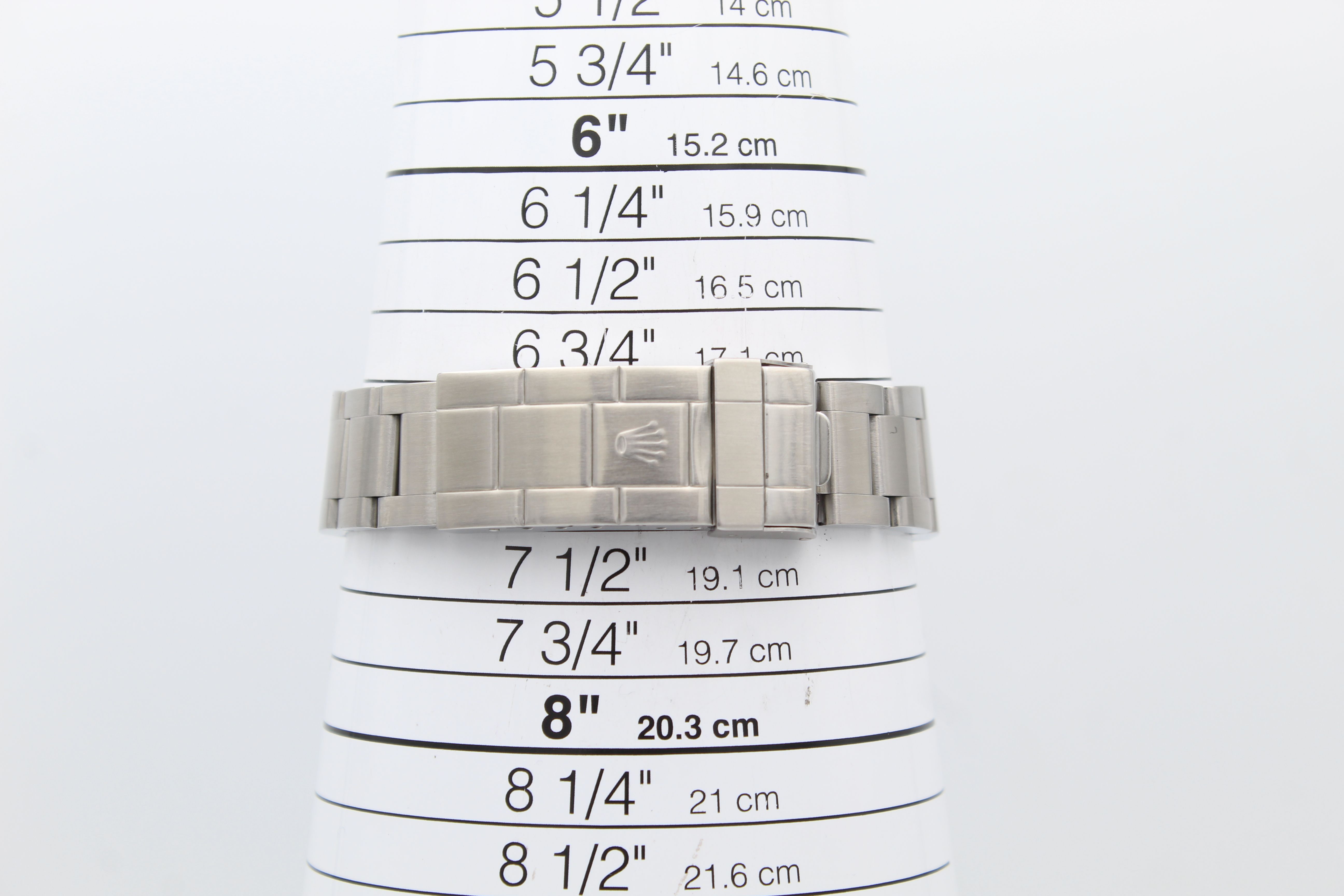 - Lichte gebruikssporen zoals haarlijntjes of kleine oppervlakkige krasjes. Kast, bezel en band behouden hun scherpe randen en oorspronkelijke vorm. Mogelijk professioneel gepolijst zonder de originele contouren aan te tasten. Mechanisch volledig functioneel.