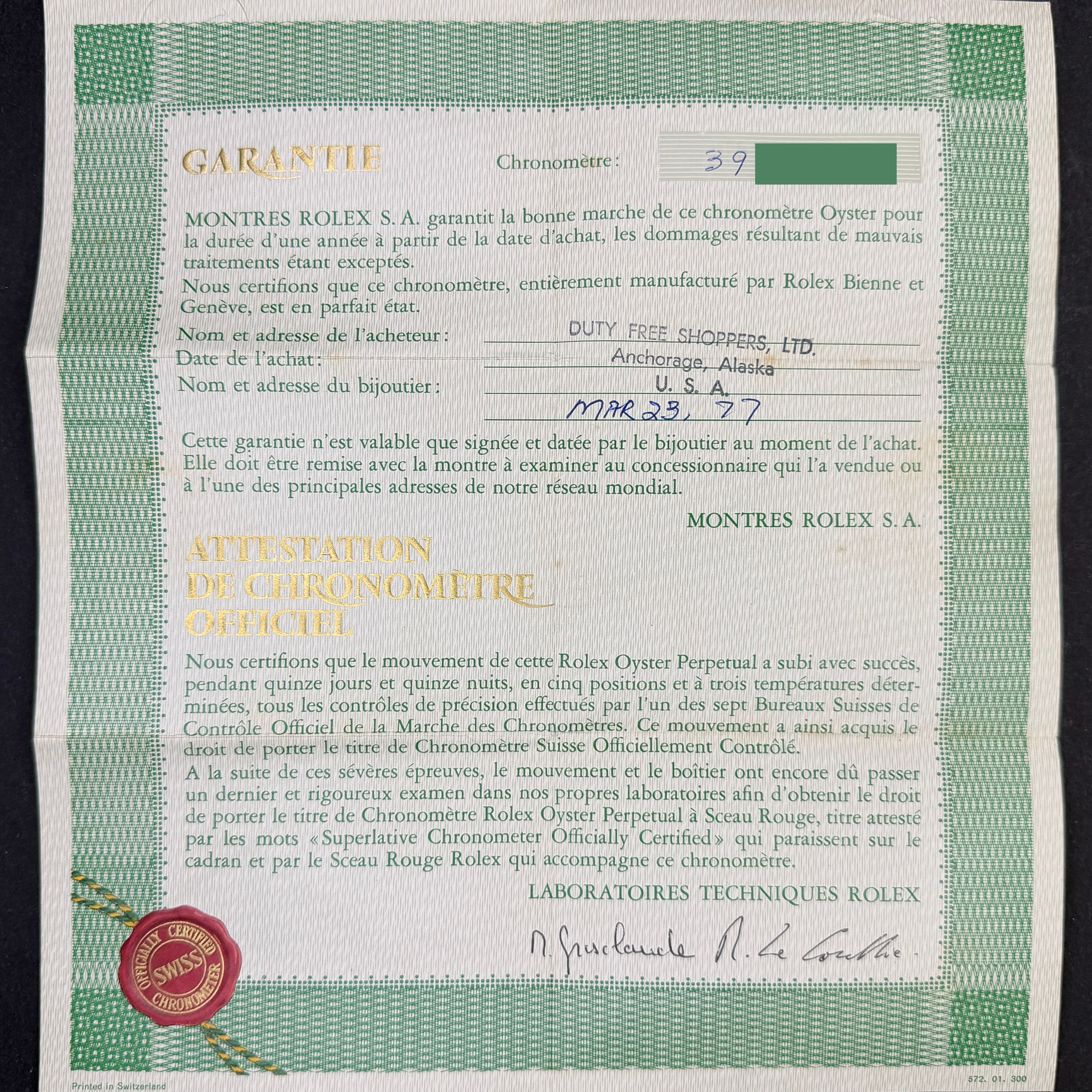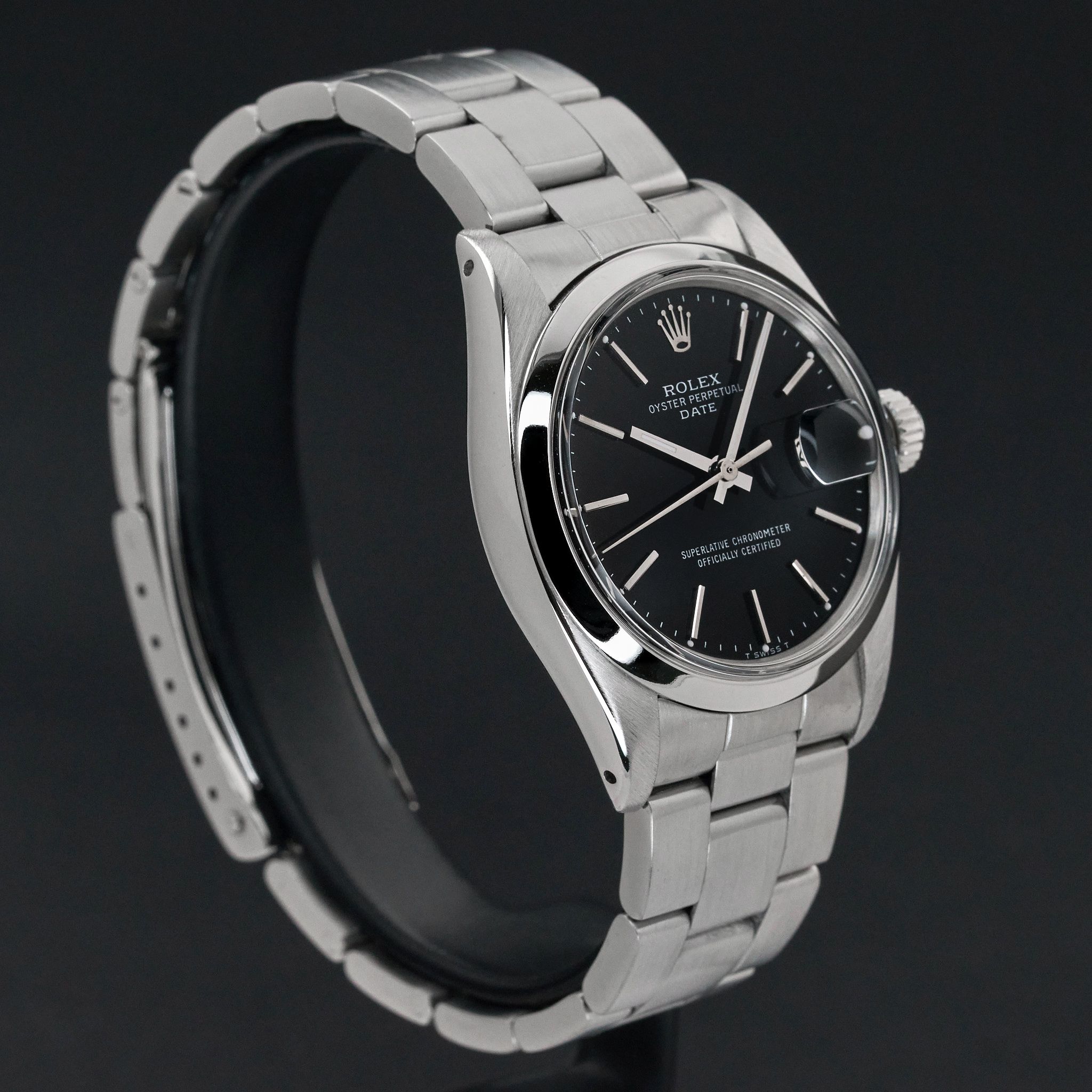 This Rolex Oyster Perpetual Date 1500 features a Black dial and is crafted from stainless steel, with a production year of 1975.Case No: 397XXXX
