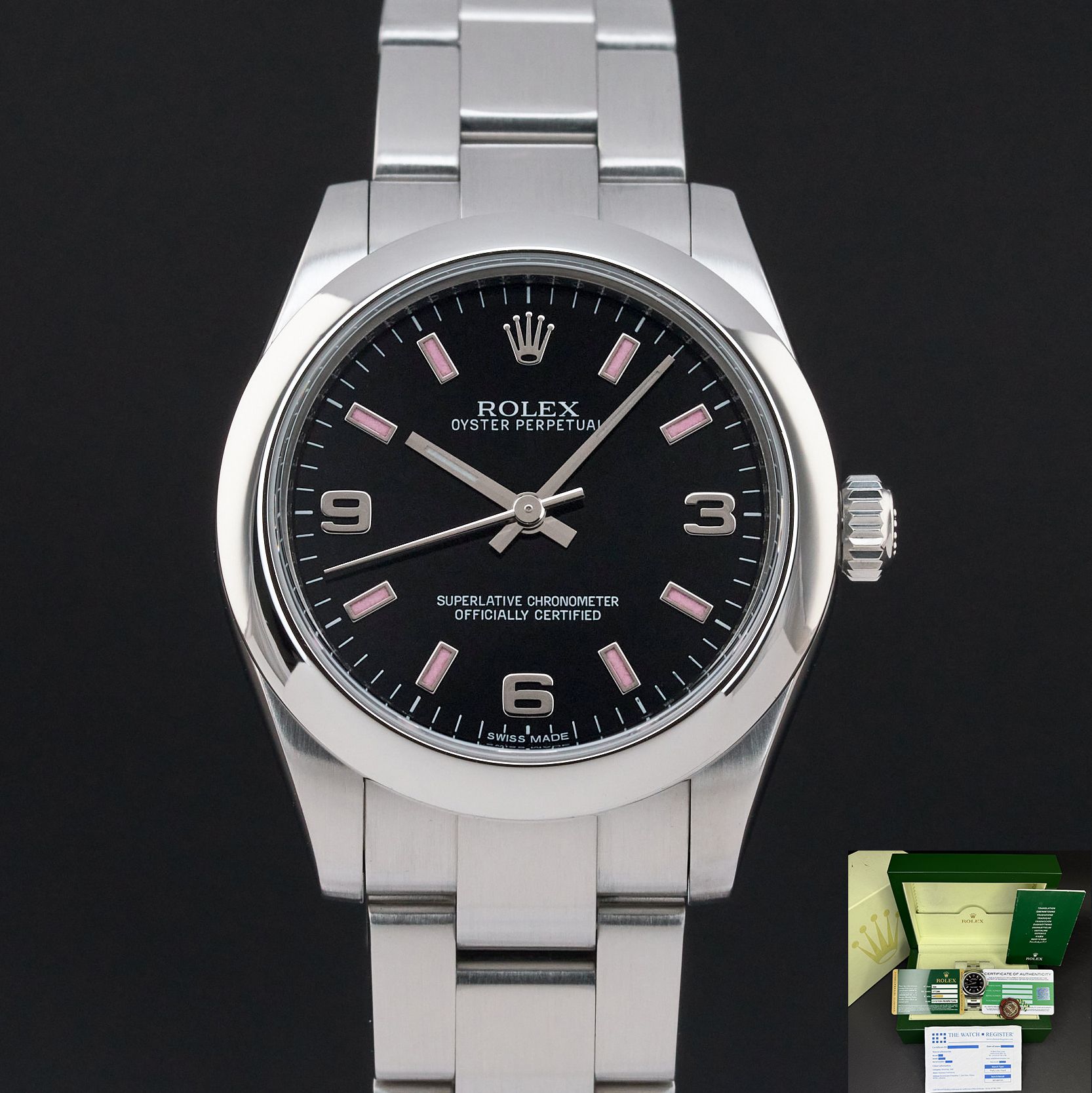 Rolex Oyster Perpetual, 177200, 31mm, 2010, Steel, Black Arabic dial, Fullset, 1y warranty