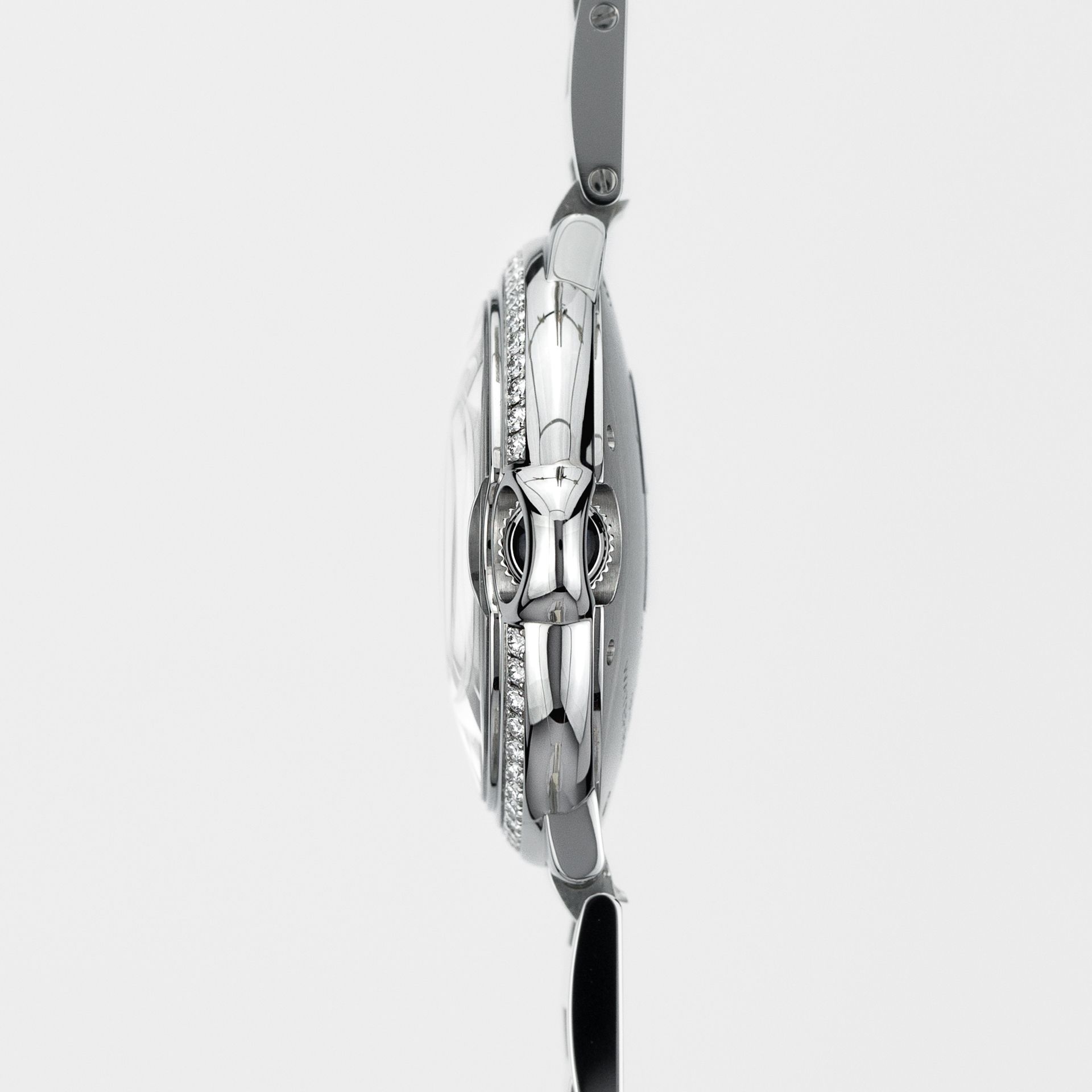 The presented watch is from the current model range – the 36 mm version, offered in a steel case, with a metal bracelet with a deployant clasp. Undoubtedly, the most impressive thing in this case is the rich decoration of the watch – the bezel is set with 54 high-quality diamonds with a total weight of 0.79 carats.
