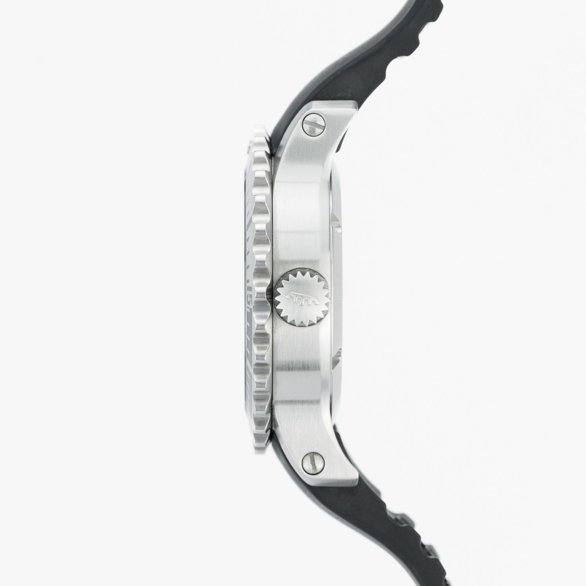 At the heart of the watch beats the time-proven ETA 2836-2 – a workhorse, unpretentious and easy to service and repair. The water resistance is an impressive 200 m – allowing not only for bathing and swimming, but also for scuba diving.