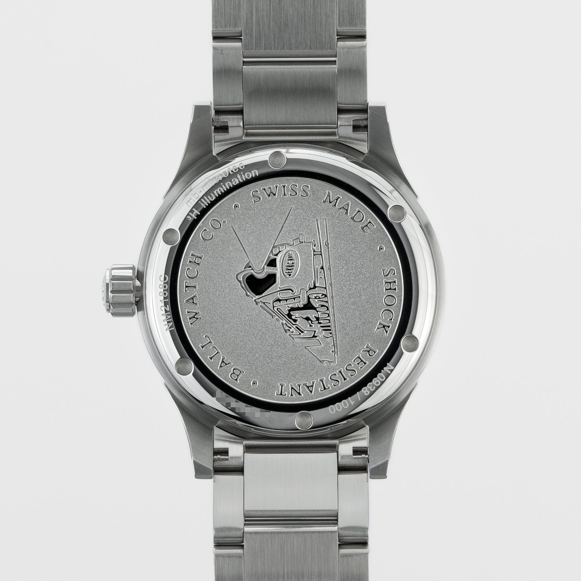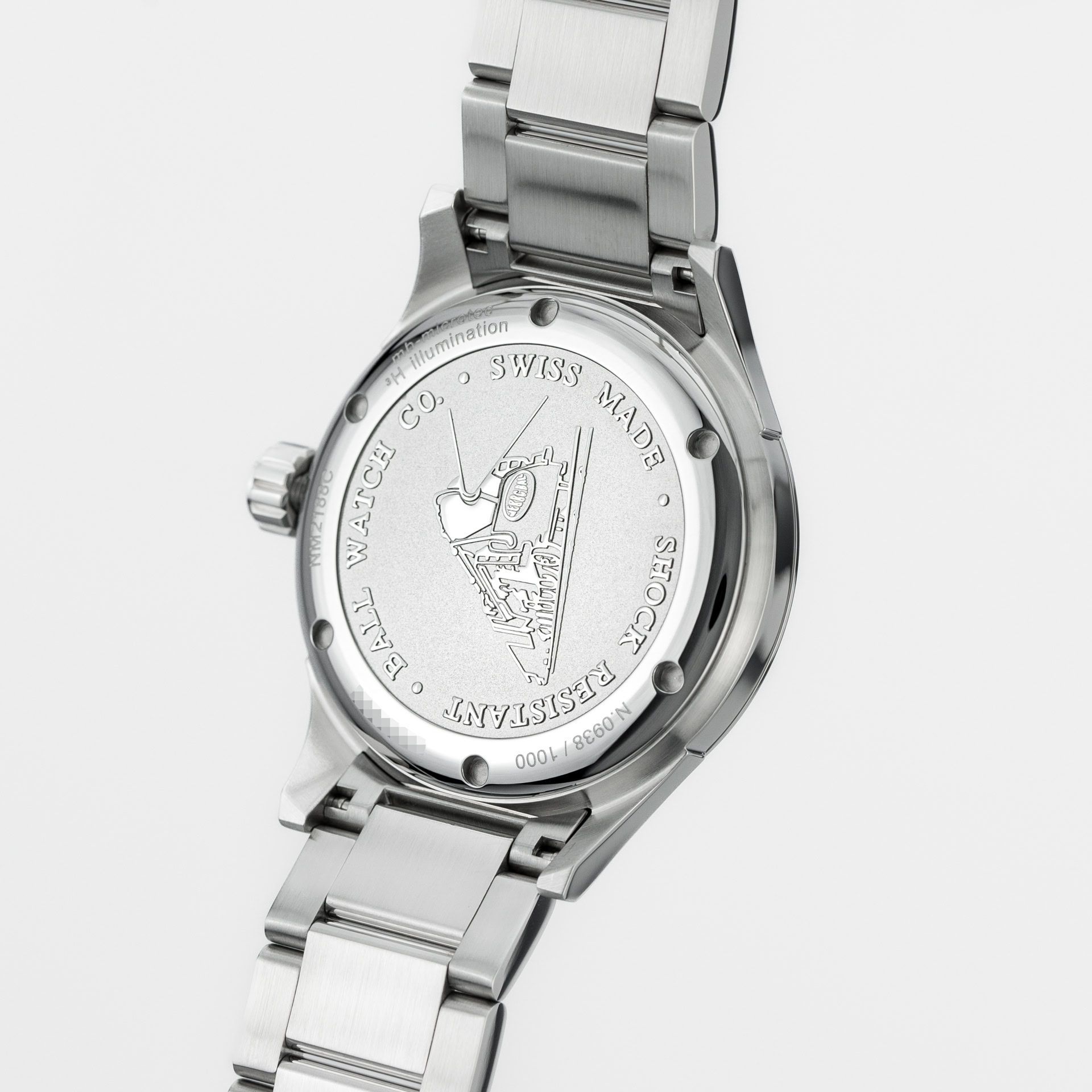 De automatische kaliber BALL RR1103, gebaseerd op de ETA 2824-2 (28.800 vph, 25 juwelen en een gangreserve van 38 uur), drijft al deze schoonheid aan. Het merk laat ons niet genieten van het uurwerk, vanwege de gesloten achterkant, maar in ruil daarvoor heeft de achterkant een gravure van een locomotief – het symbool van het merk.