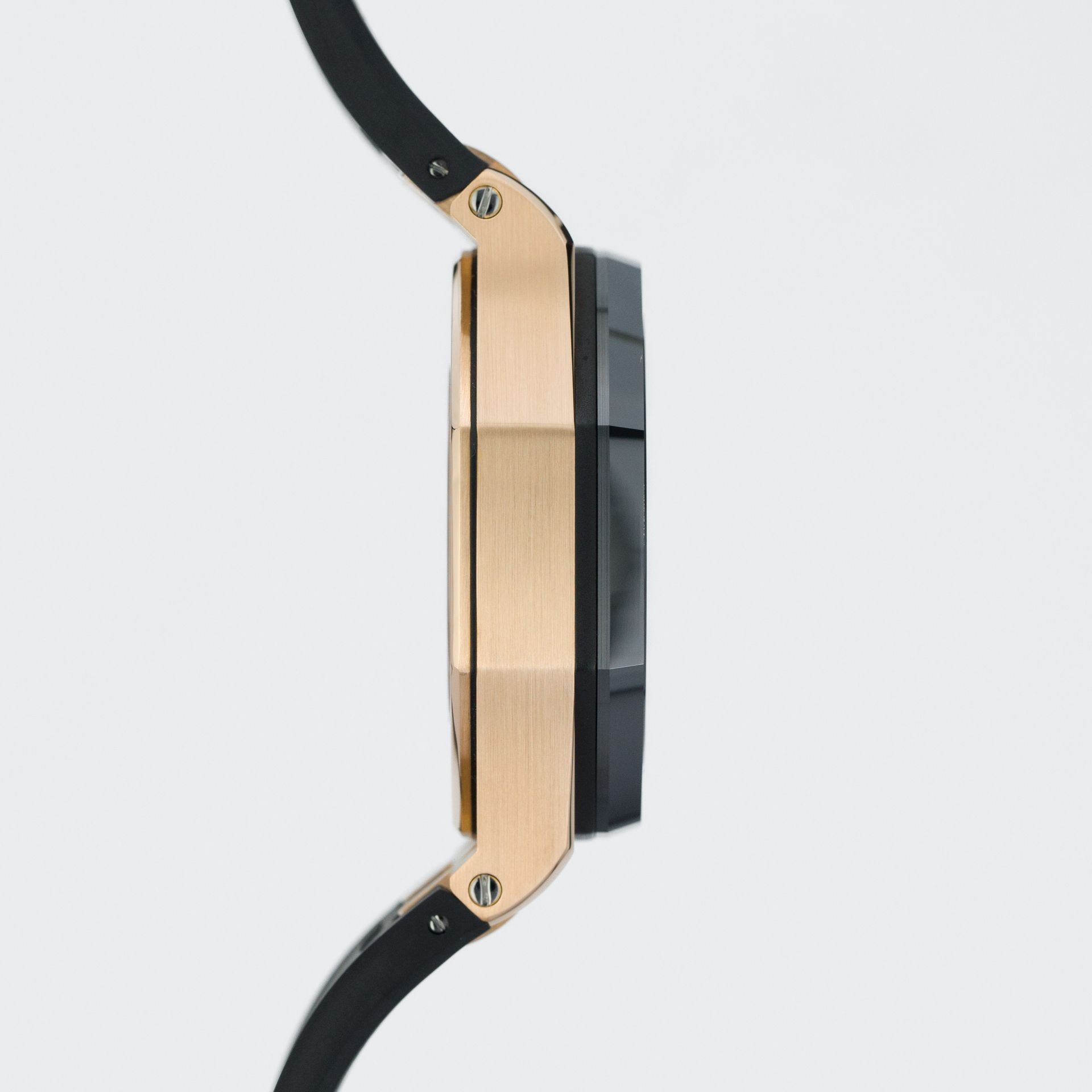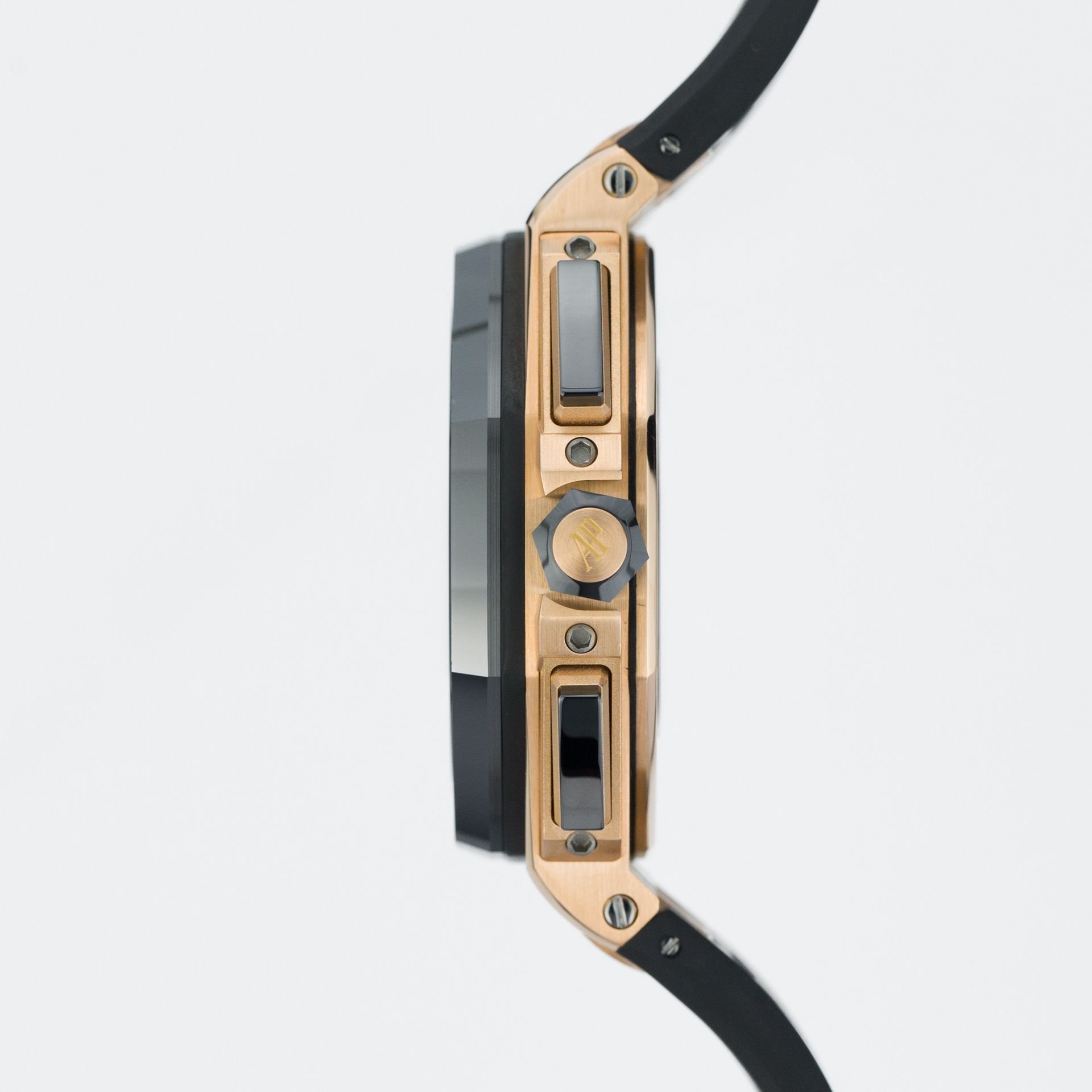 In 2011, following the trend for larger cases and sizes, the brand presented the AP ROO 26400 at SIHH. This model automatically became highly sought after by all fans of the brand and allowed the manufacturer to permanently establish this case in its assortment to this day. Unlike the 42-millimeter version, this timepiece is not offered in a wide variety of models and dial types, and the one presented today is the most recognizable with a white dial and black subdials. 1 year later, in 2012, the solid rose gold version appeared, and 5 years after that, the model presented today – the main difference is that the case is 18-carat rose gold, and the dial is black with black subdials.