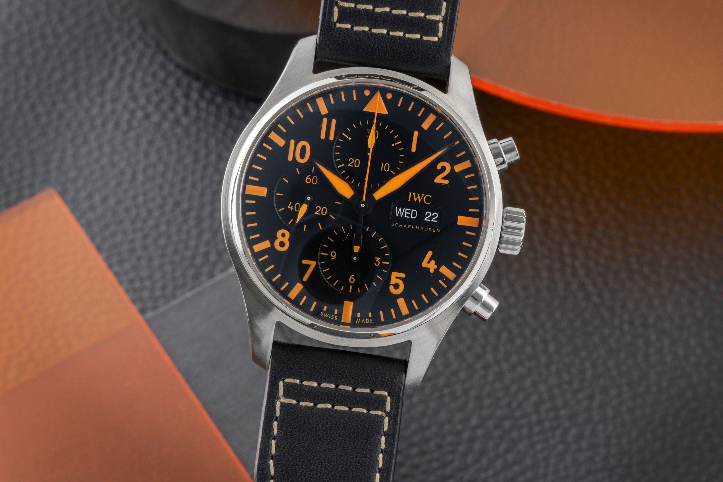 Alternative title: IWC IW377730 Pilot's Watch Chronograph Orange Storm; IWC Pilot "Orange Sandstorm" Chronograph Stahl Automatik Ref. IW377730 B&P 2021 [2601224]