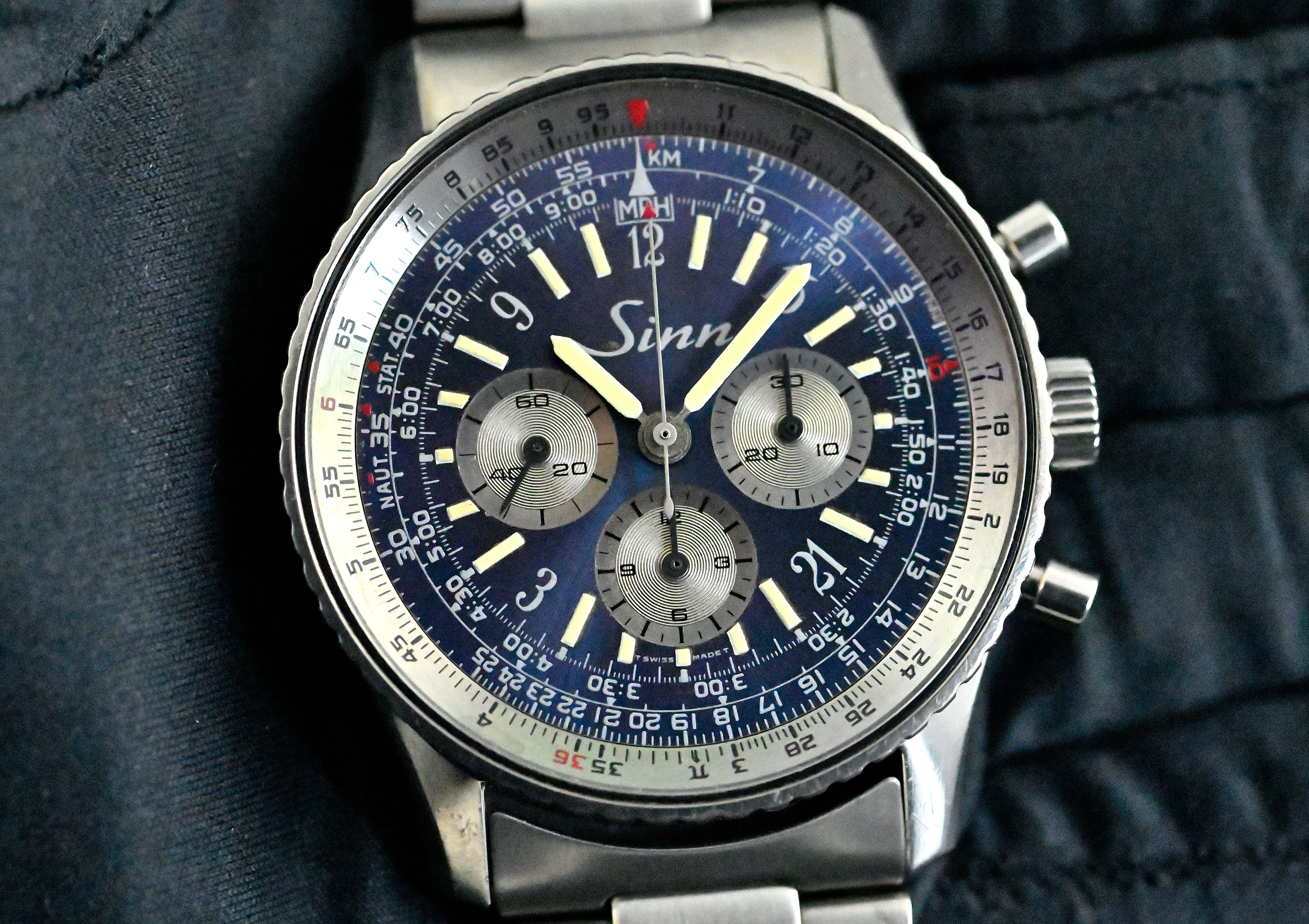 Sinn 903 rare Vintage Navigation Chronograph | blue & purple dial | Titanium