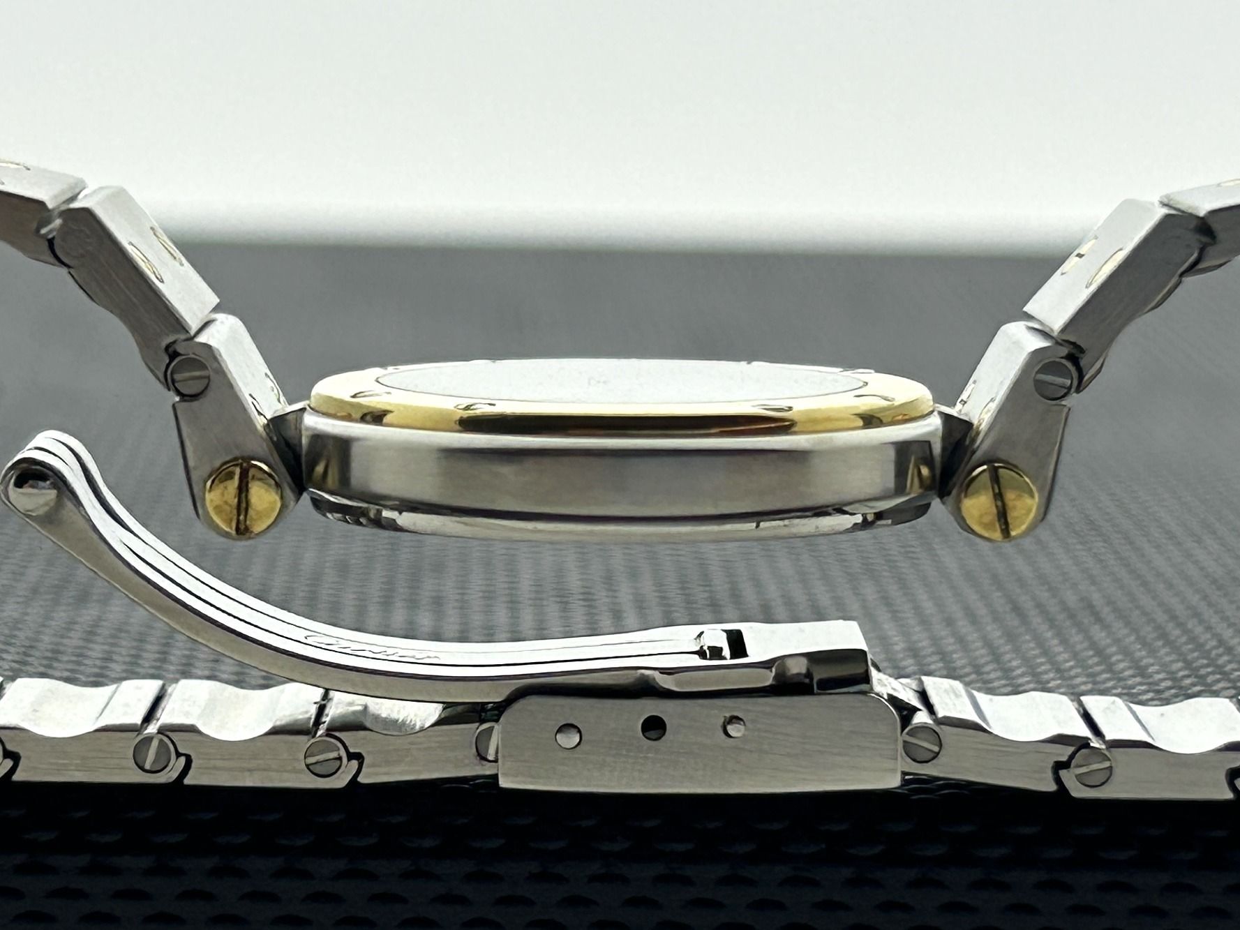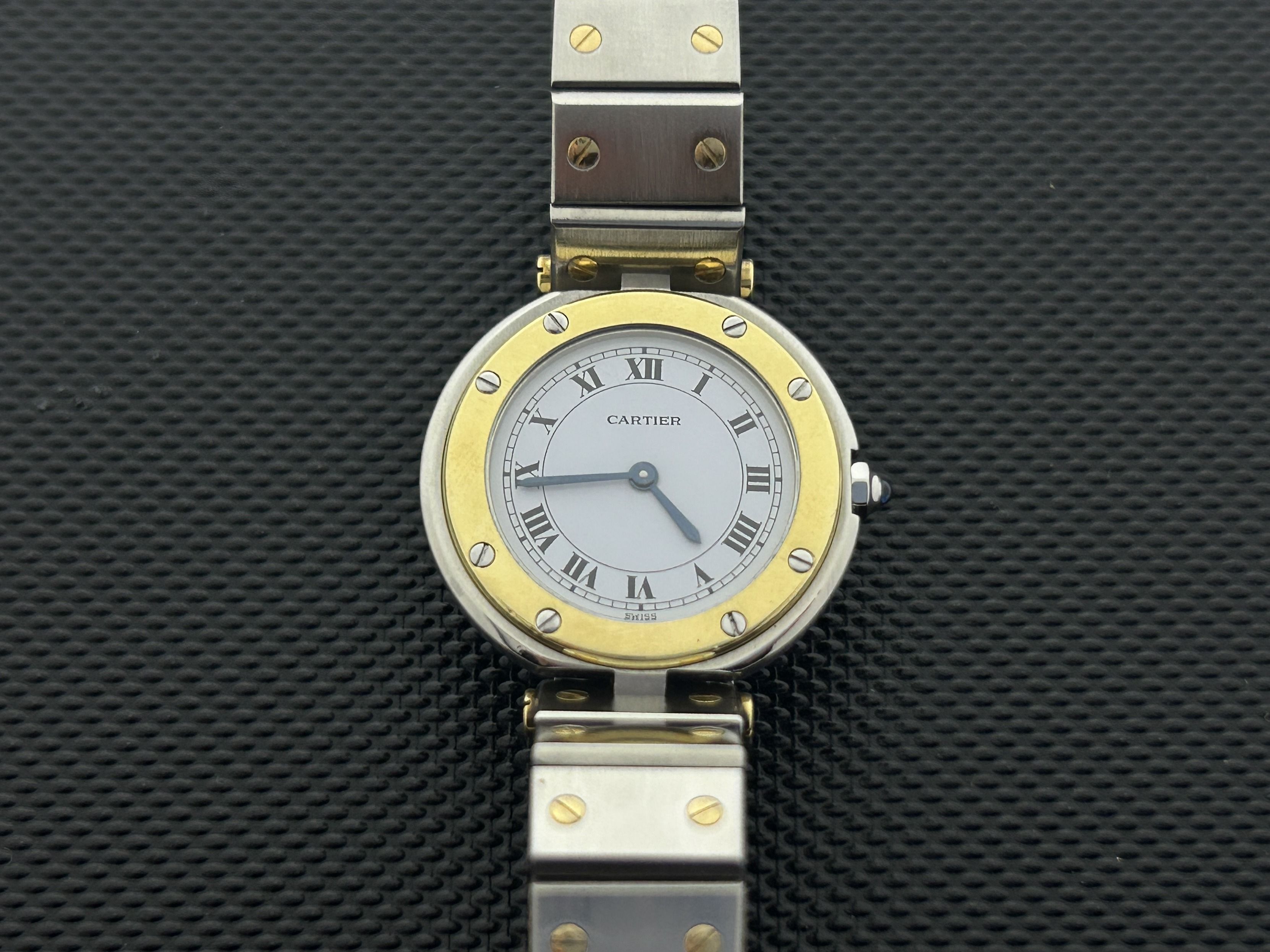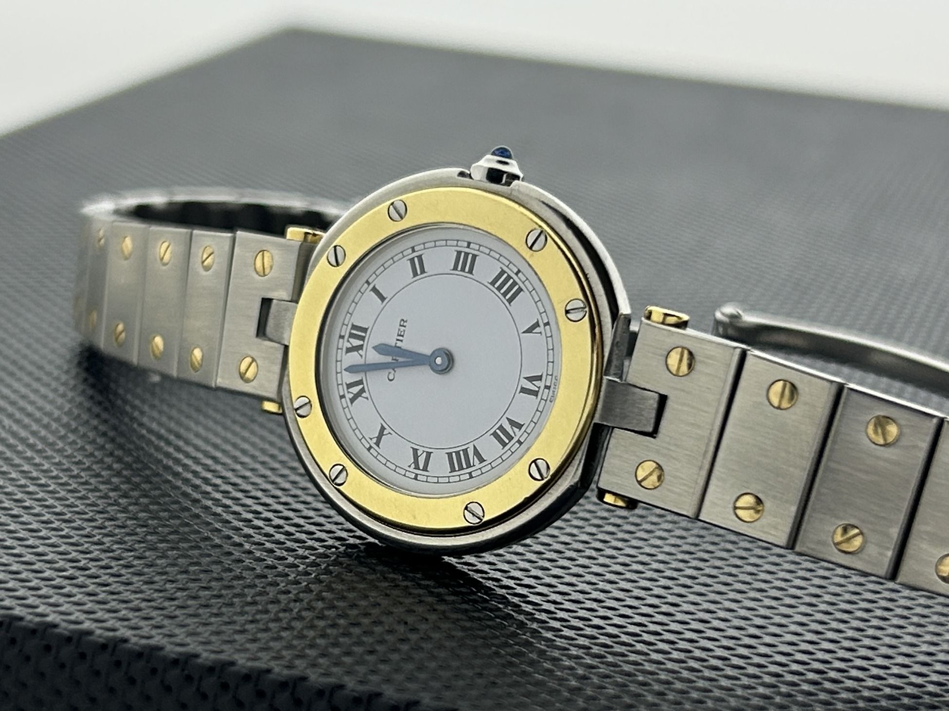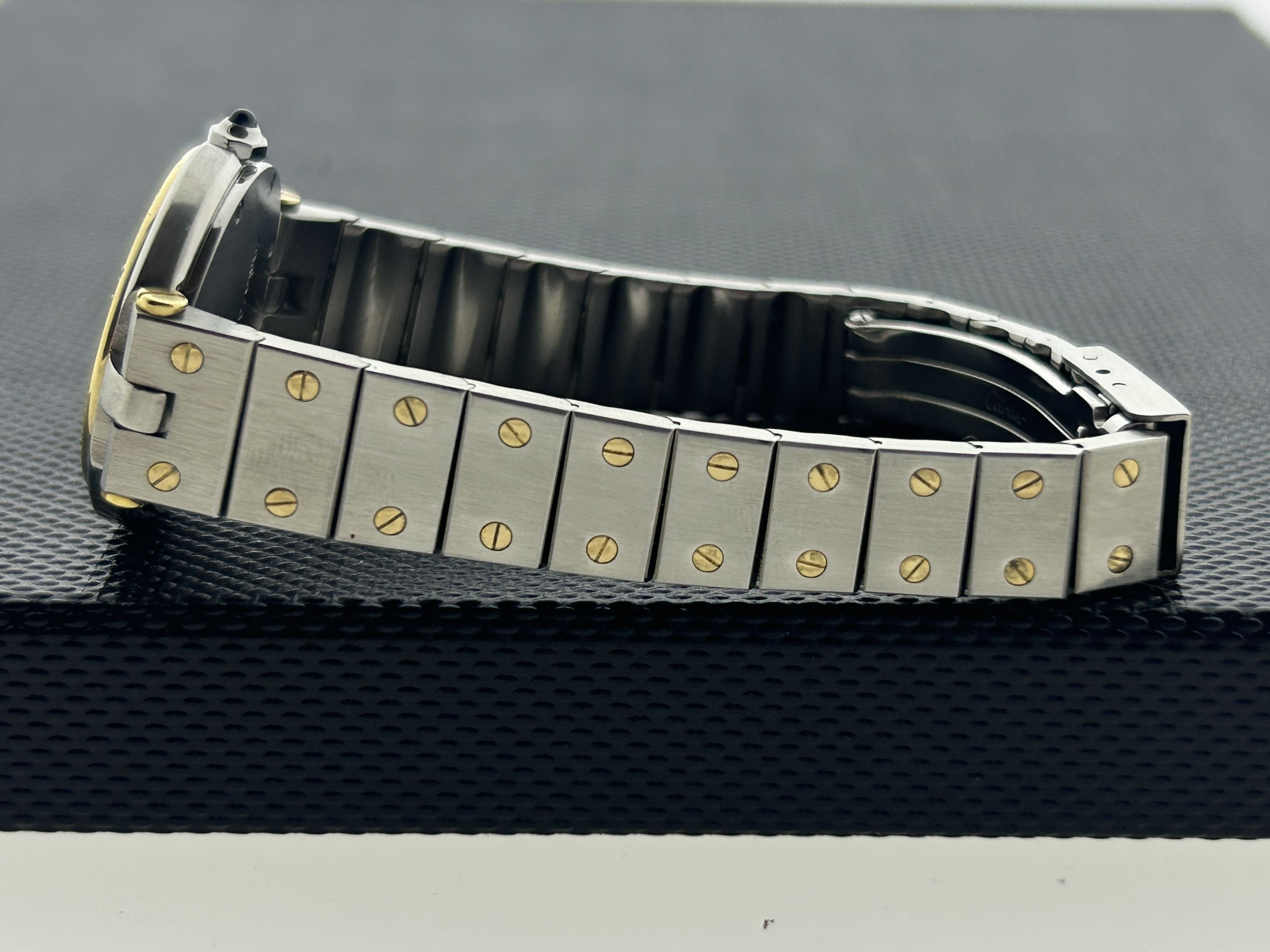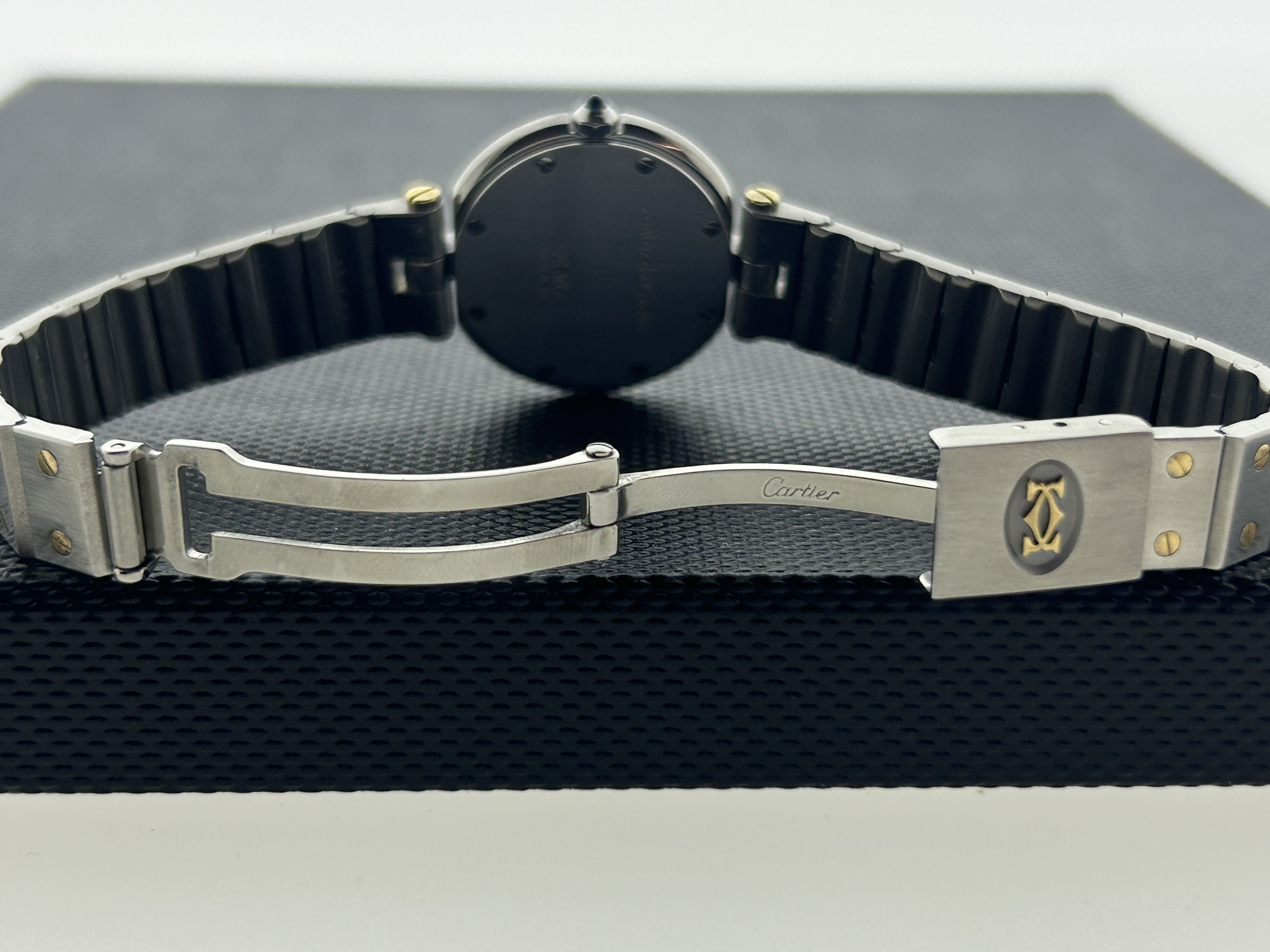 The Cartier comes with 24 months of warranty.A gold/steel Cartier Santos Vendôme watch, ref. 8191. The watch has a steel 27mm case with a yellow gold bezel and a gold/steel bracelet. The Cartier Santos has a white dial with Roman numerals. The Vendôme has a quartz movement and has been serviced recently. The watch is in a great condition, with fine scratches.