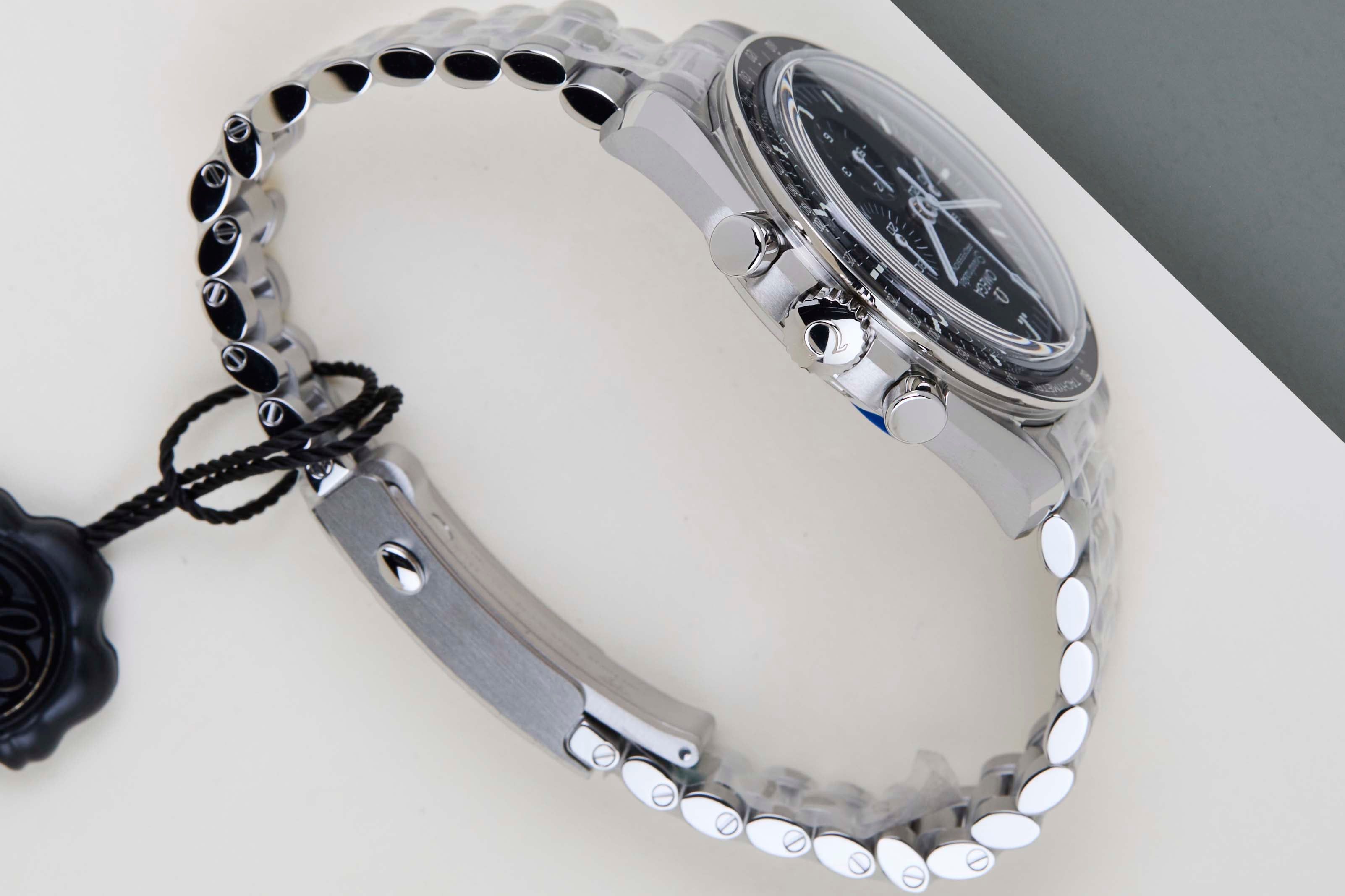 Dit Omega Speedmaster Moonwatch Professional is in een Nieuw & Ongebruikt staat en wordt geleverd met de originele Omega Garantiepapieren en doos. Bovendien heeft het horloge nog steeds een Internationale Omega Garantie tot februari 2031.