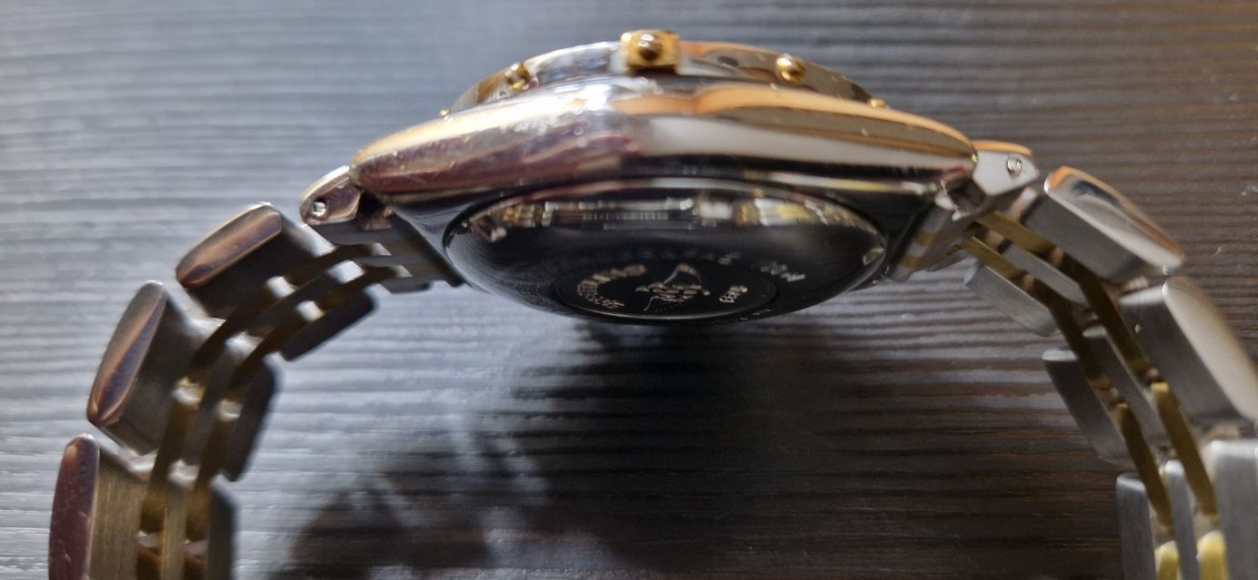 - Lichte gebruikssporen zoals haarlijntjes of kleine oppervlakkige krasjes. Kast, bezel en band behouden hun scherpe randen en oorspronkelijke vorm. Mogelijk professioneel gepolijst zonder de originele contouren aan te tasten. Mechanisch volledig functioneel.