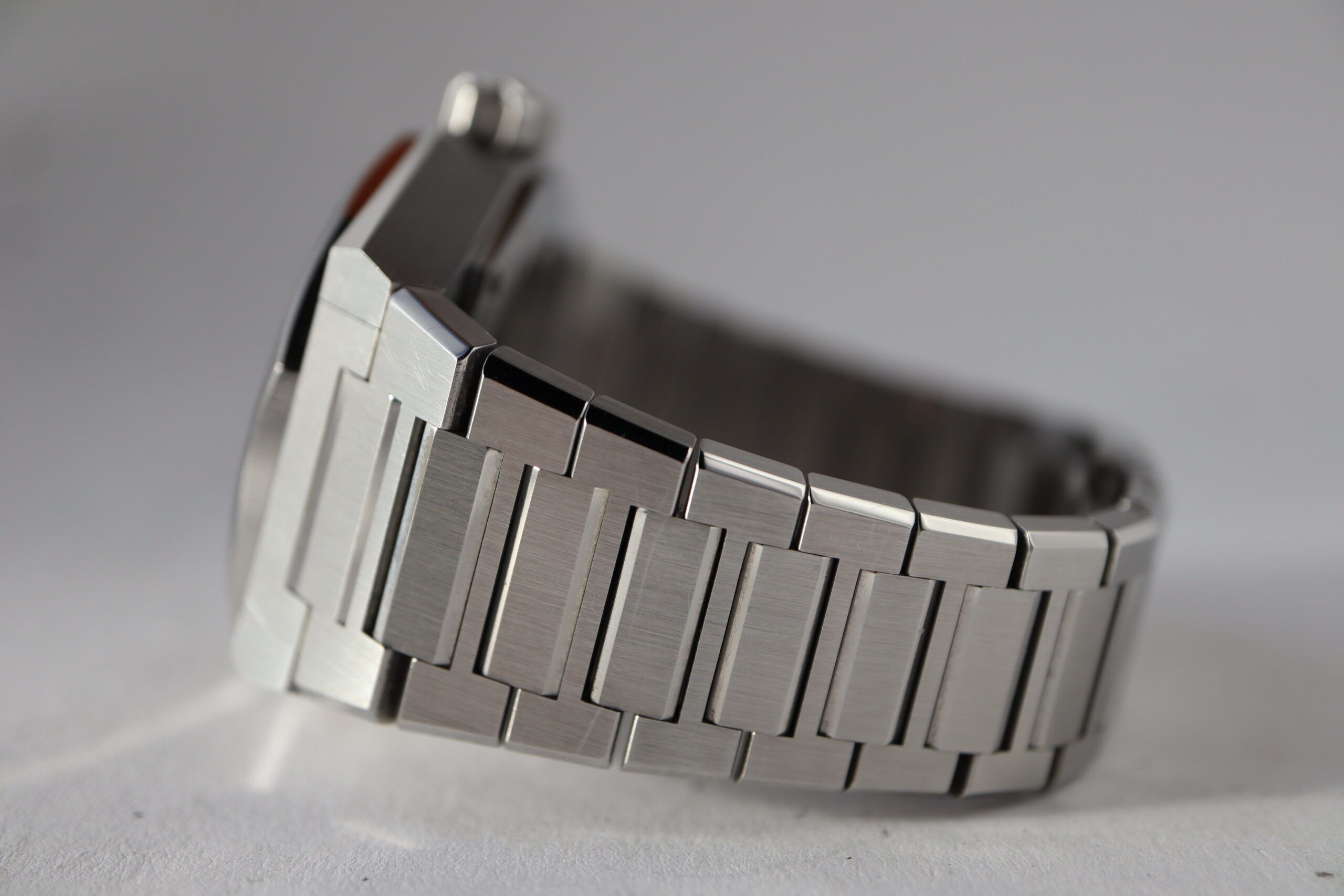 - Lichte gebruikssporen zoals haarlijntjes of kleine oppervlakkige krasjes. Kast, bezel en band behouden hun scherpe randen en oorspronkelijke vorm. Mogelijk professioneel gepolijst zonder de originele contouren aan te tasten. Mechanisch volledig functioneel.