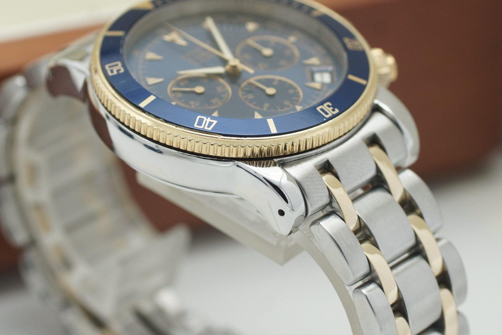 - Lichte gebruikssporen zoals haarlijntjes of kleine oppervlakkige krasjes. Kast, bezel en band behouden hun scherpe randen en oorspronkelijke vorm. Mogelijk professioneel gepolijst zonder de originele contouren aan te tasten. Mechanisch volledig functioneel.