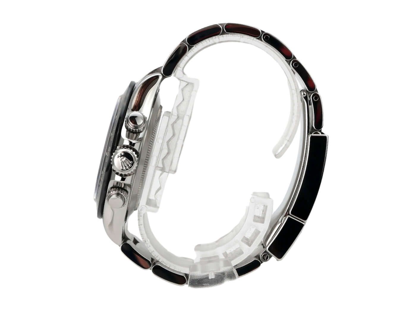 Behuizing gemaakt van gepolijst en satijn afgewerkt roestvrij staal, keramische bezel met tachymeterschaal, Oyster roestvrijstalen armband gepolijst en satijn afgewerkt met veiligheidsvouwsluiting, witte wijzerplaat, luminescente wijzers, Rolex kaliber 4130, 44 juwelen, ongeveer 72 uur gangreserve, chronometer, saffierglas, schroefkroon met kroonbeschermers, geschroefde roestvrijstalen achterdeksel, waterbestendig tot 10 bar.
