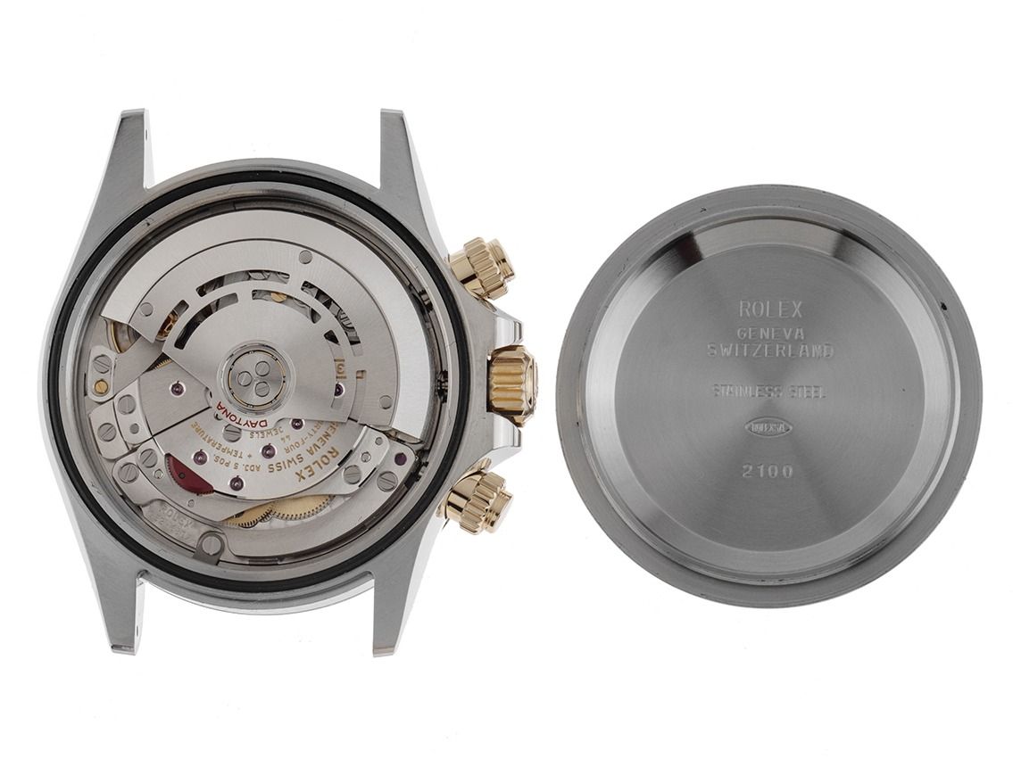 Behuizing van gepolijst en gesatineerd roestvrij staal, behuizingsdiameter zonder kroon 40mm, behuizingshoogte 12,3mm. Lunette van gepolijst en gegraveerd 18kt geelgoud met tachymeterschaal. Armband Oyster van gepolijst en gesatineerd roestvrij staal/18kt geelgoud, veiligheidsvouwsluiting van roestvrij staal/18kt geelgoud met fabrikantlogo. Wijzerplaat champagnekleurig met in geelgoud gezette luminescerende indexen en geelgouden luminescerende wijzers, subdials met een geelgouden rand. Uurwerk automatisch, chronograaf, chronometer met certificaat, Rolex manufacuurkaliber 4130 met 44 edelstenen. Weergave van uur en minuut via centrale wijzers, kleine seconde met seconde-stop voor nauwkeurige tijdinstelling bij 6 uur. Saffierglas krasbestendig. Kroon met schroefdraad en flankbescherming met fabrikantlogo, chronograafknoppen met schroefdraad. Achterkant van roestvrij staal met schroefdraad. Gewicht van het horloge inclusief armband 160g, lengte van de armband inclusief behuizing 185mm. Referentienummer: 116503, behuizingsnummer: 3UD58XXX, ID: P2732361500326H-23500, artikelnummer: 10000085268.