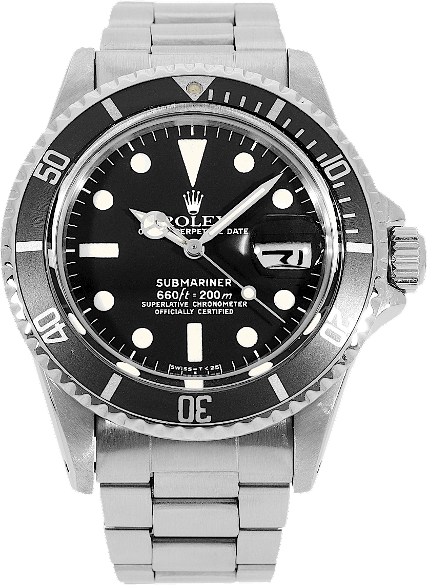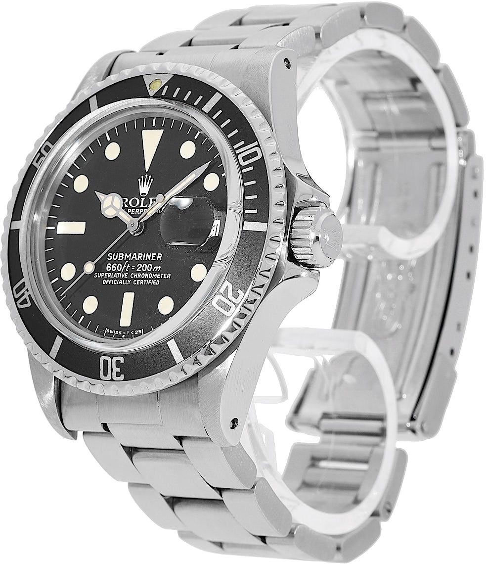 Rolex Submariner Date, Reference: 1680, Gender: Male, Size: 40mm, Dial color: Black, Strap material: Stainless Steel, Movement: Automatic, Year: 1976, Condition: Previously worn with some signs of usage. The movement is flawless and the case has been cleaned. watch tested to ensure full functionality. An inspection by our certified watchmakers guarantees its authenticity., Documents: Chronext Certificate