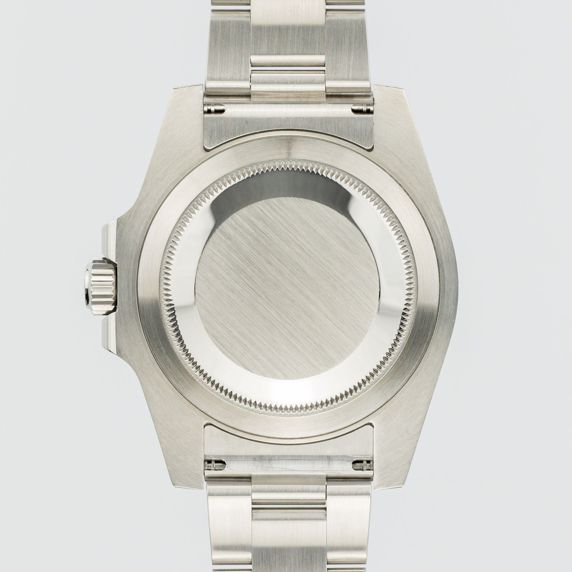 Voor de achterzijde van de behuizing gebruikt Rolex een solide case (zoals bij al zijn modellen) – in het geval van de Submariner is deze vrij van enige markeringen of versieringen. Zoals bekend, gebruikt het merk 904L staal, dat superieur is aan de standaard 316L in weerstand, vooral in contact met zout water. Rolex staat bekend om zijn toewijding aan materialen – een groot deel van de productieprocessen wordt intern uitgevoerd om consistentie in kwaliteit te waarborgen. Veel horloges zijn door onze handen gegaan, maar we kunnen categorisch stellen dat weinig merken zoveel aandacht besteden aan de details en afwerking van de behuizingen.
