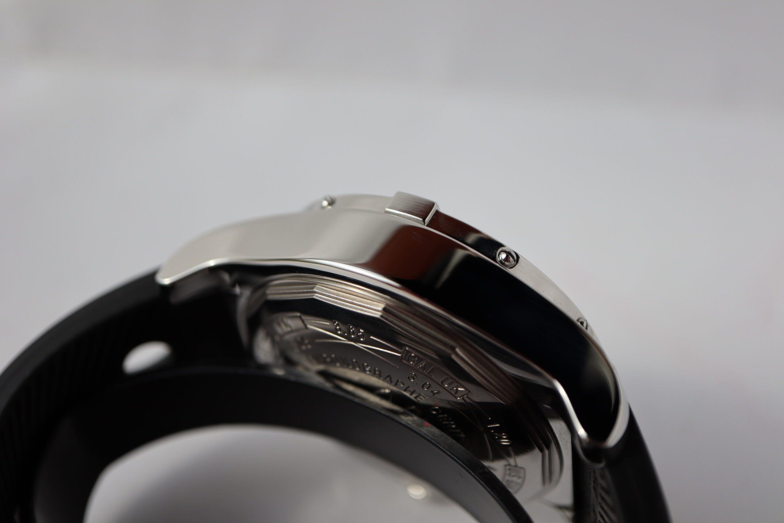 With a width closer to 50mm than 40mm, watches don’t get much tougher than the A13370 from Breitling. From its launch, the Avenger collection has been best known for its use of Breitling's signature ratcheted bezel with four projecting "rider tabs." The look was designed to assist pilots in more easily gripping the bezel while wearing gloves. Here it is seen in stainless steel to matches its larger-than-life steel case. The huge bezel of the Super Avenger plays a huge part in emphasizing the distinctive style of the model; as does its a knurled crown flanked by crown guards and the duo of imposing chronograph pushers.The dial of the Super Avenger is suitably purposeful with bold styling, substantial dial furniture, and an active consciousness regarding heightened legibility. There is a great range of depth on offer here with a mixture of raised hour markers, and sunken sub-registers producing an impressive dynamism. Its pointed and luminous hands, large sweeping chronograph hand, and neatly framed date aperture effectively convey usability with tons of aggressive character. From top to bottom this tough as nails Breitling talks the talk and certainly walks the walk. As far as oversized chronographs go, the Super Avenger undoubtedly takes the crown.