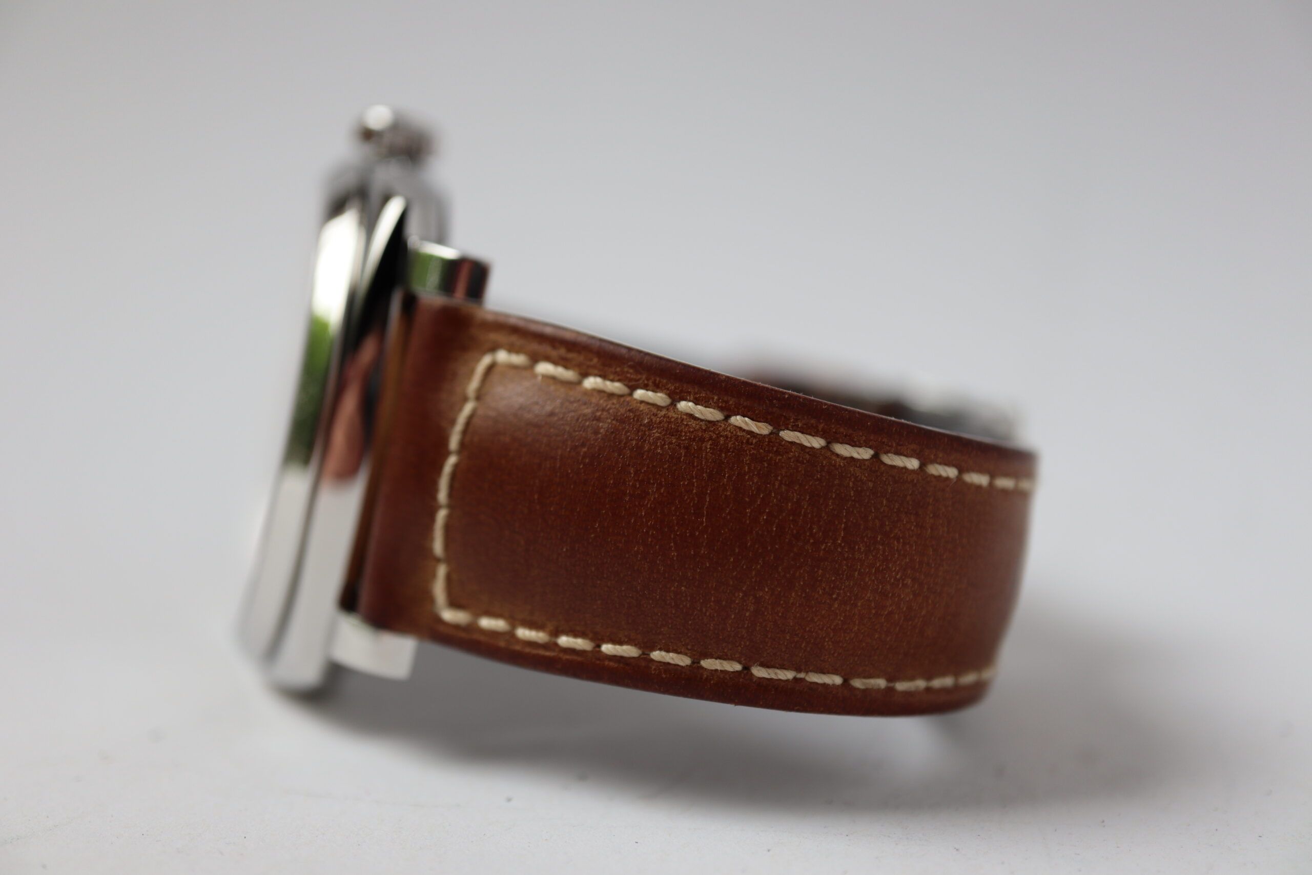 - Lichte gebruikssporen zoals haarlijntjes of kleine oppervlakkige krasjes. Kast, bezel en band behouden hun scherpe randen en oorspronkelijke vorm. Mogelijk professioneel gepolijst zonder de originele contouren aan te tasten. Mechanisch volledig functioneel.