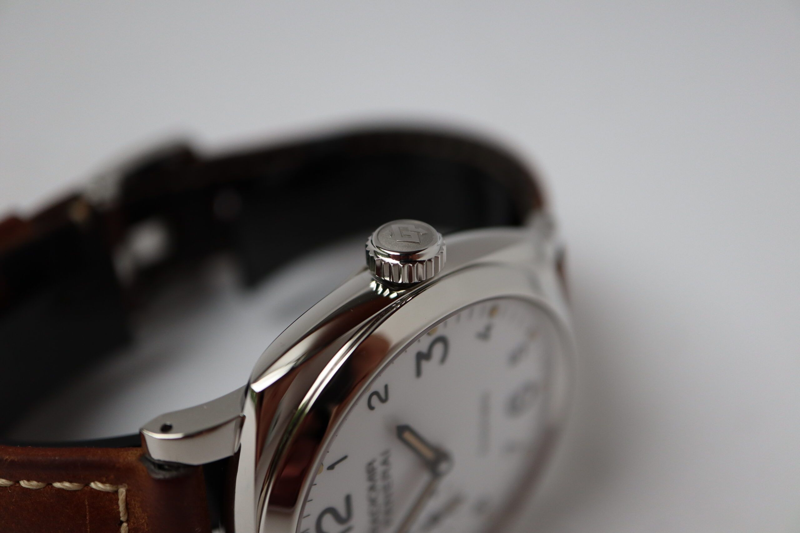 Het ontwerp en de belangrijkste kenmerken van de Radiomir 1940 3 Days Automatic komen rechtstreeks uit de jaren '40, maar de moderniteit is zodanig dat het horloge een absoluut hedendaagse stijl heeft. De wijzerplaat van de nieuwe Radiomir 1940 3 Days Automatic is verkrijgbaar in wit en het grafische ontwerp maximaliseert de helderheid en leesbaarheid van de wijzerplaat, met de grote zwarte cijfers die overeenkomen met de uurmarkeringen en de kleine secondewijzerplaat op negen uur, een kenmerk van Panerai-horloges uit de jaren '40. De cushion case, in AISI 316L roestvrij staal met gepolijste afwerking, heeft een diameter van 42 mm en is slechts 10,93 mm dik. Op de achterkant van de Radiomir 1940 3 Days Automatic bevindt zich een rond venster met een saffierglas waardoor het automatische P.4000 uurwerk, volledig gemaakt in de Officine Panerai Manufacture in Neuchâtel, bewonderd kan worden. De nieuwe Radiomir 1940 3 Days Automatic (PAM00655) is waterbestendig tot 10 bar (een diepte van ongeveer 100 meter) en wordt geleverd met een natuurlijke, onbewerkte leren band met contrasterende stiksels.