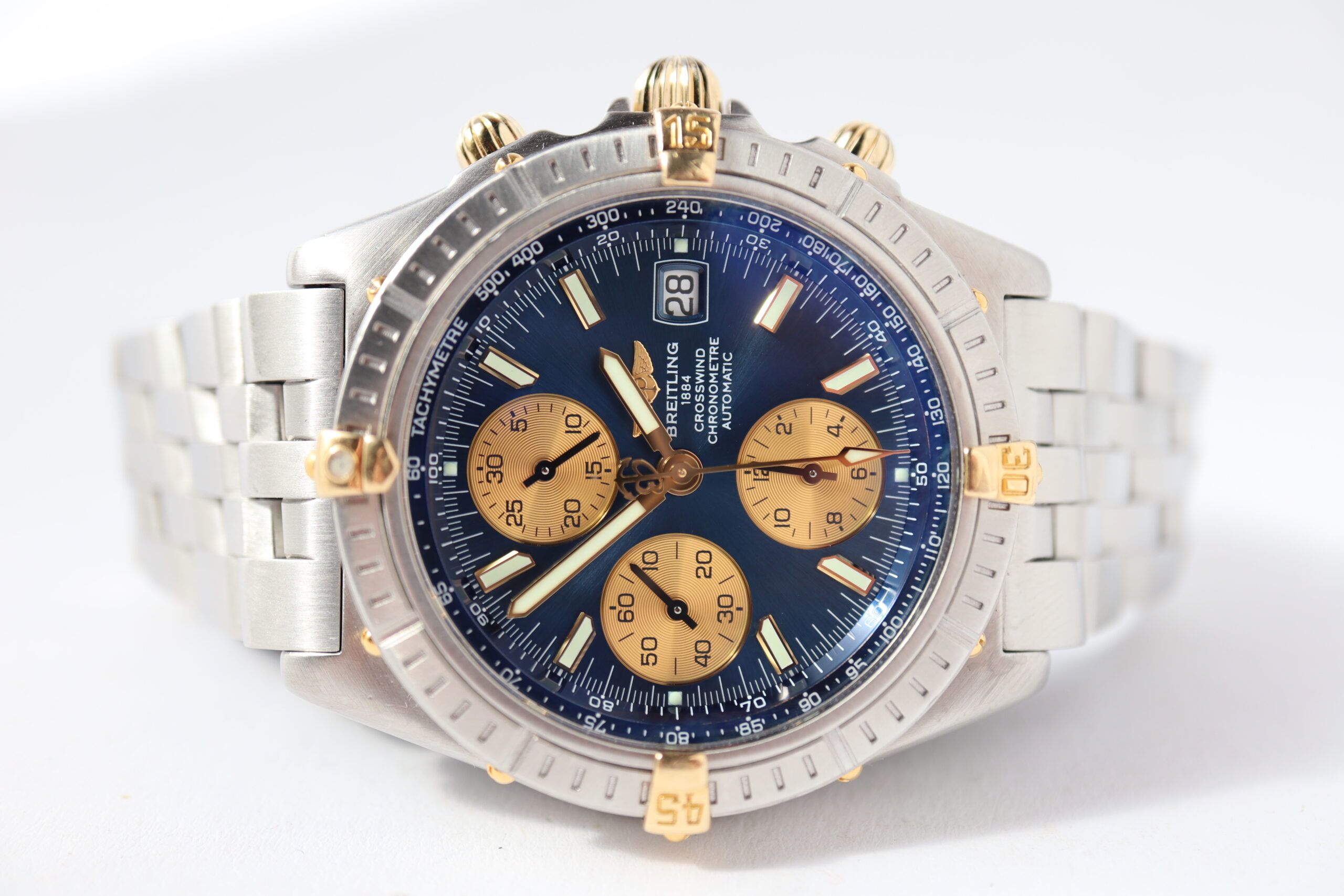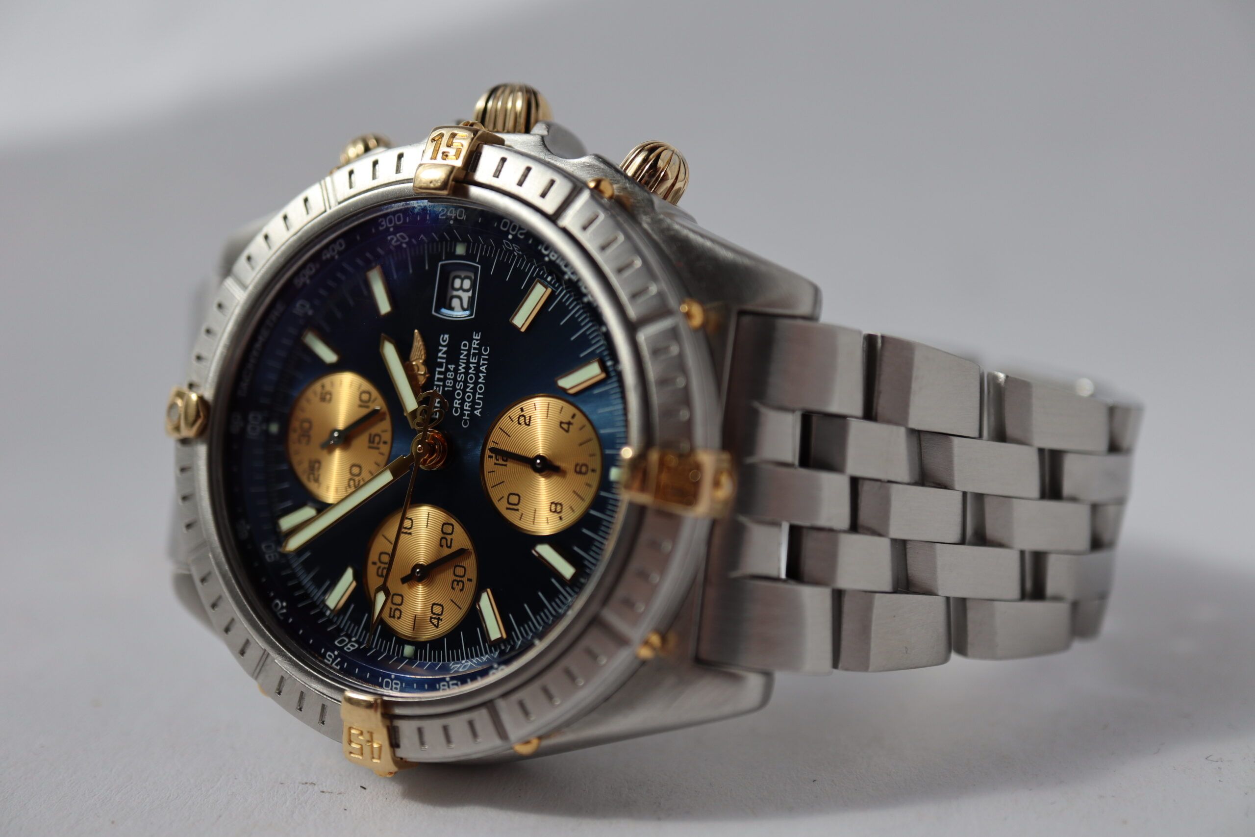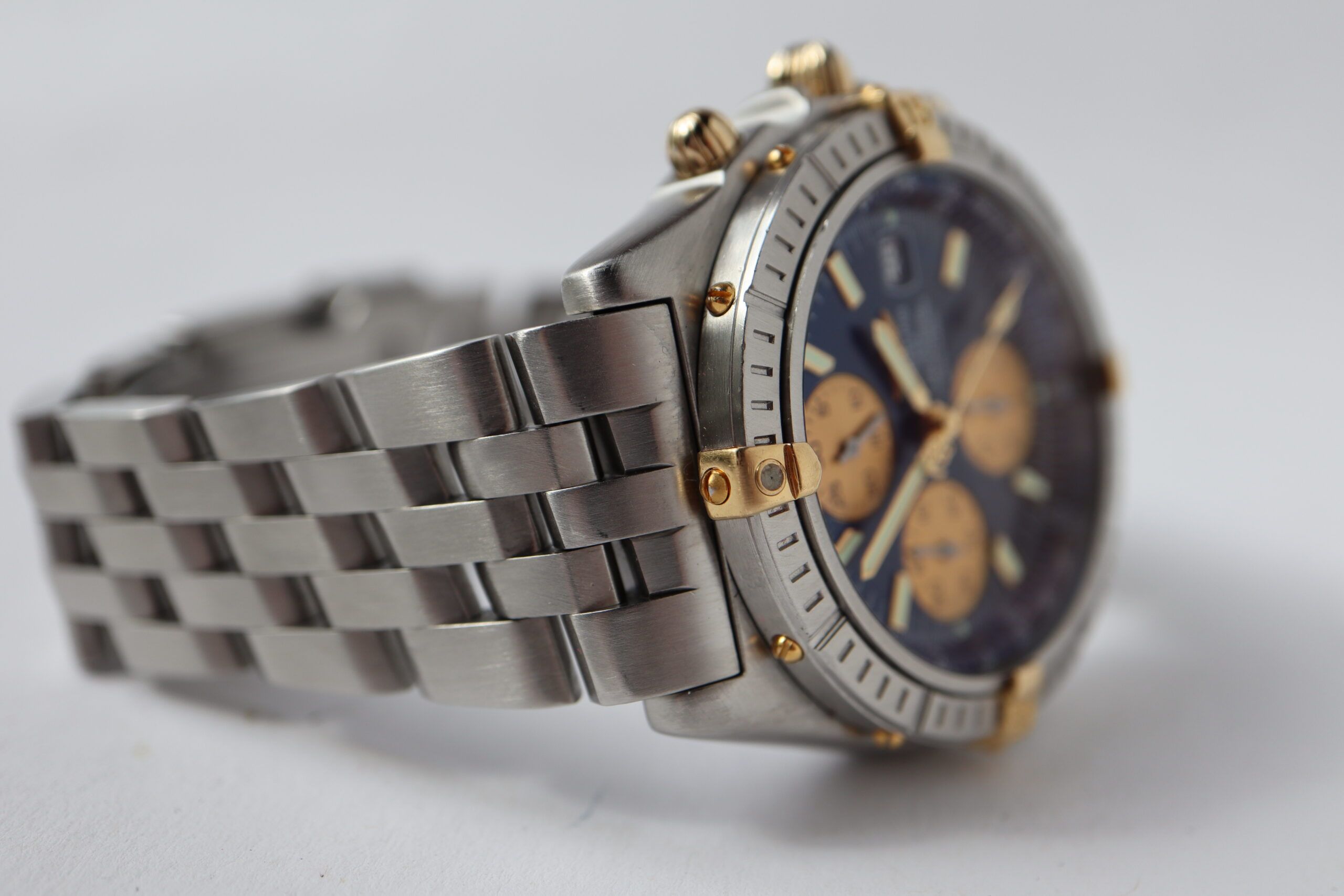 From its 1997 launch until its discontinuation in 2004, the chronograph we see here is one of the last truly retro designs brought to the market by Breitling. Featuring straight as compared to tapered lugs, slimmer proportions compared to post-2004 styles, and a charmingly retro two-tone aesthetic that is today essentially unseen from the brand, the watch is a distinguished late '90s timepiece in its style, but nonetheless - like almost all Breitlings before and after it – a serious, action-oriented chronograph at its core.