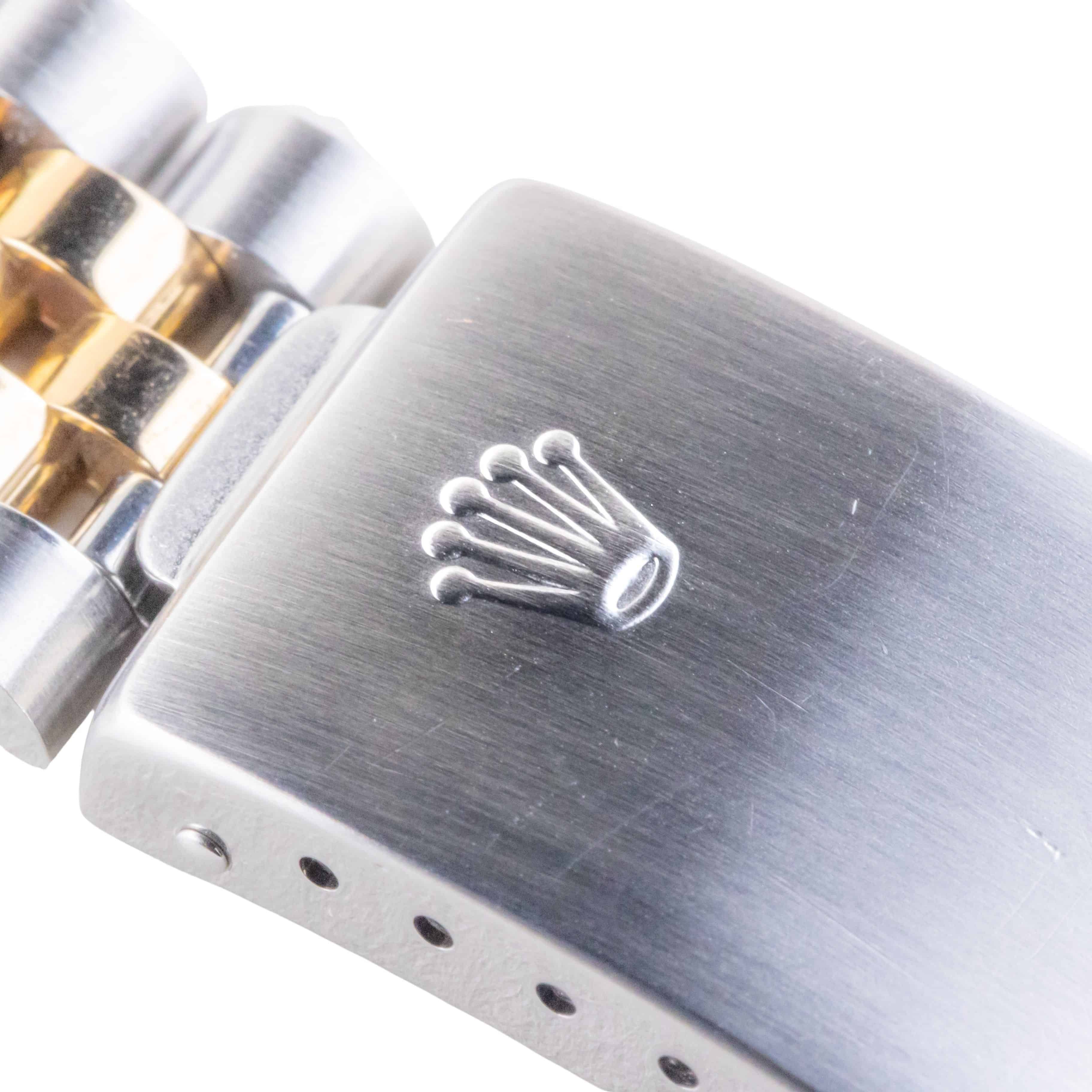 Rolex Oyster Perpetual Datejust referentie 16233 uit 1991. De Datejust 16233 heeft een 36mm gouden en roestvrijstalen kast, een twee-tone Jubilee armband en een gefluteerde 18k gouden bezel. Deze Datejust 16233 beschikt over een automatisch uurwerk caliber 3135 met een snelle datumfunctie, een krasbestendig saffierglas en een champagnekleurige wijzerplaat met diamanten indexen.