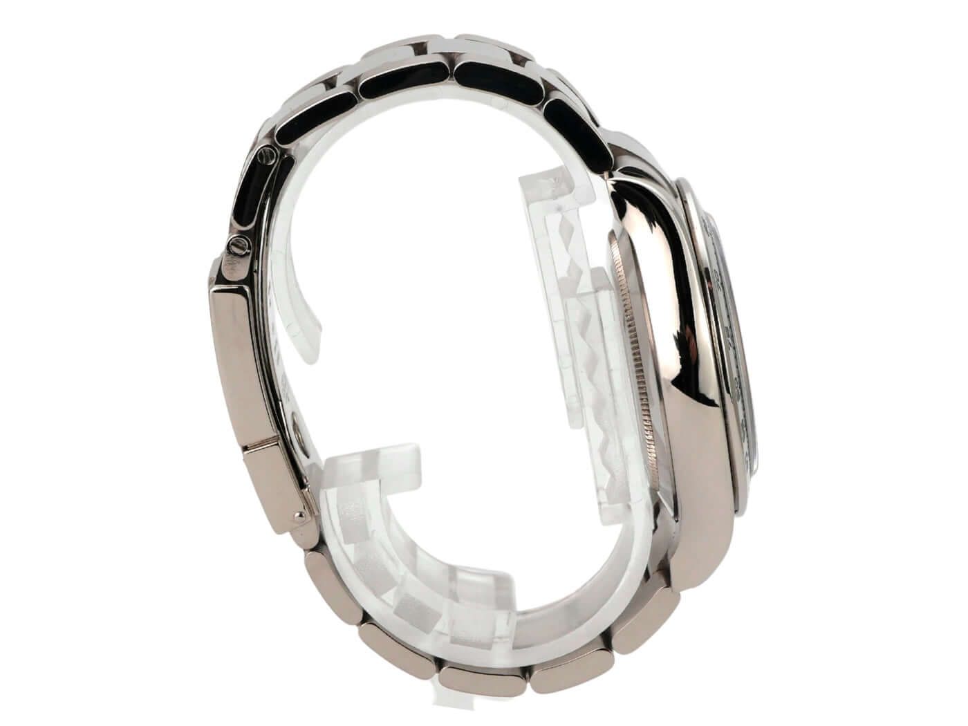 Rolex Cosmograph Daytona White Gold 116509 Gray from 2006Case made of 18 kt white gold, polished and satin-finished, case diameter 40 mm, bezel made of 18 kt white gold, polished with tachymeter scale, Oyster 18 kt white gold bracelet, polished and satin-finished with folding clasp, gray dial with Arabic numerals, luminous hands, automatic, Rolex manufacture caliber 4130 with 44 jewels, frequency 28,800 A/h, 72-hour power reserve, chronometer, scratch-resistant sapphire crystal, screw-down case back made of 18 kt white gold, water-resistant up to 10 bar.Used watch, very good condition, complete with box and papers, delivered in 2006.