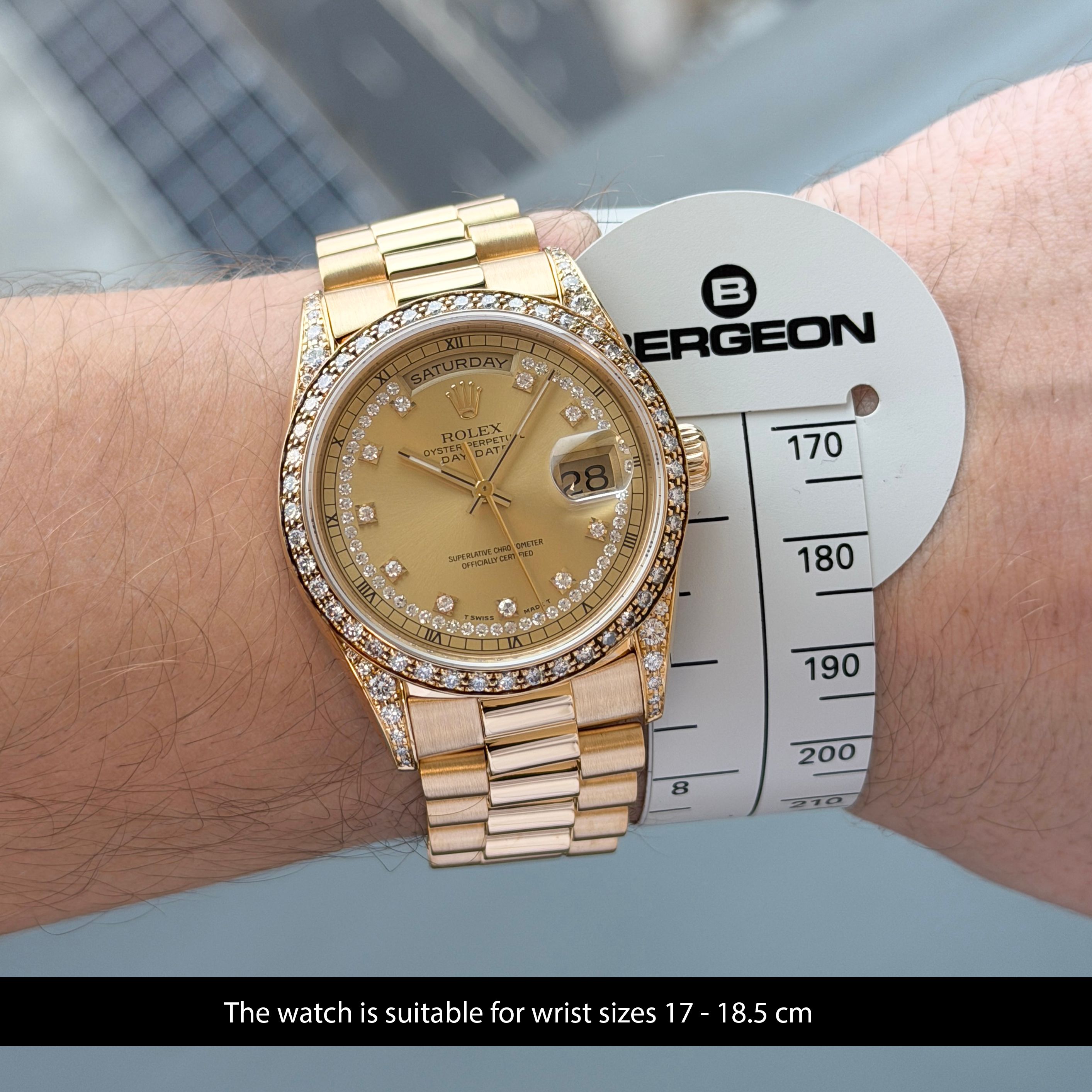 Rolex Day-Date 18388 – Tijdloze Briljantheid in Goud en Diamanten