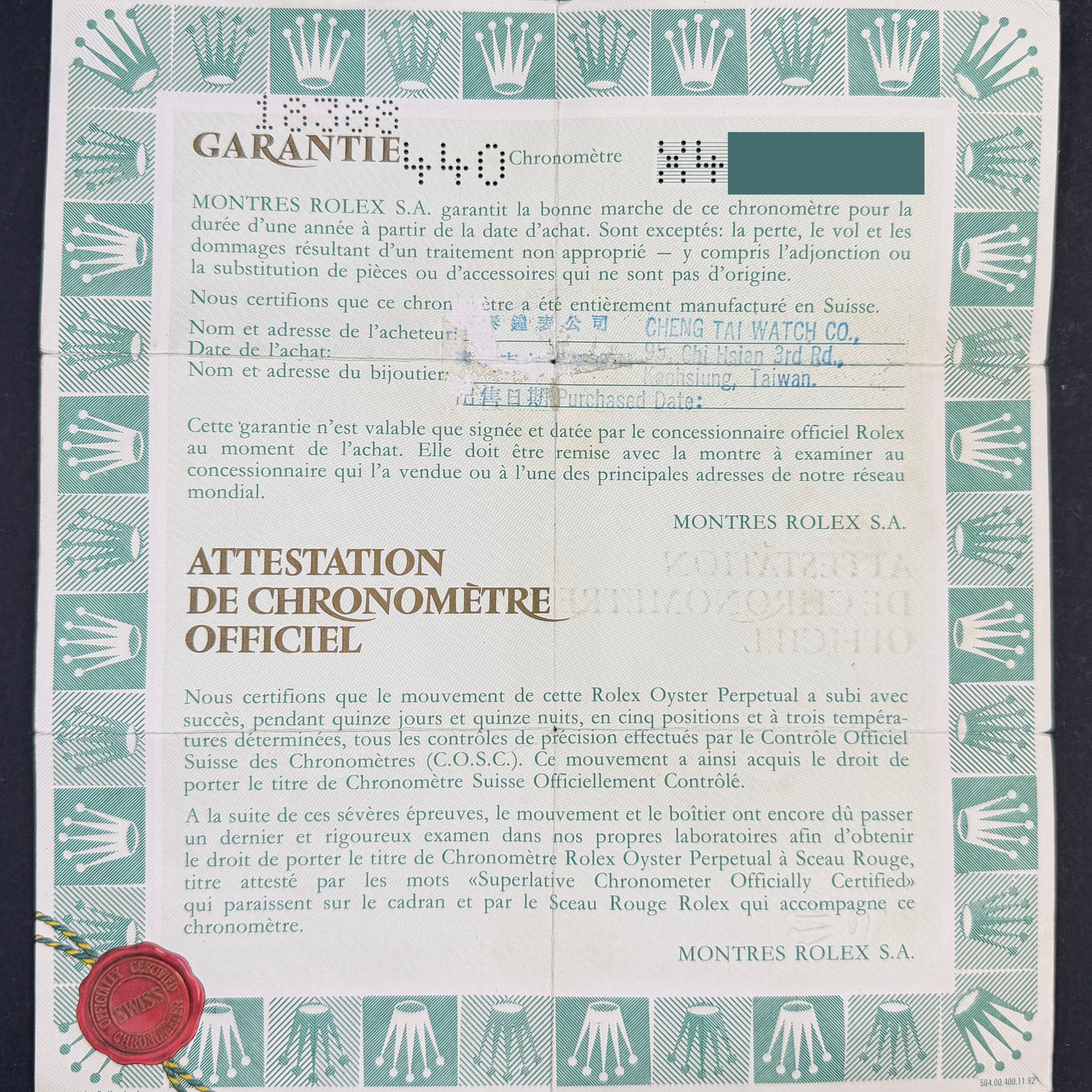 - Lichte gebruikssporen zoals haarlijntjes of kleine oppervlakkige krasjes. Kast, bezel en band behouden hun scherpe randen en oorspronkelijke vorm. Mogelijk professioneel gepolijst zonder de originele contouren aan te tasten. Mechanisch volledig functioneel.