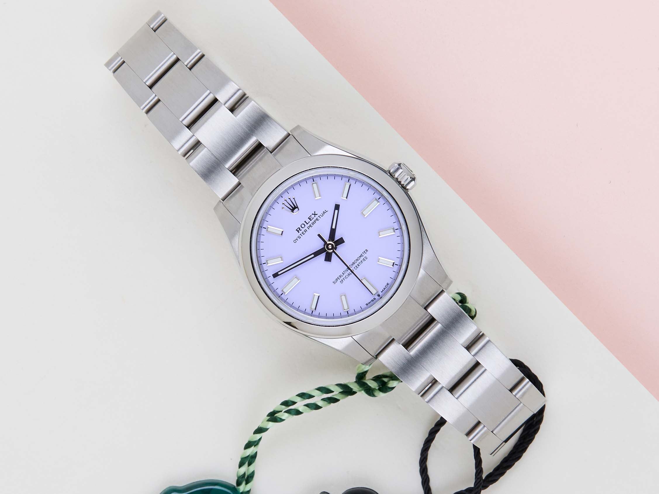New & Unworn | Full Set | International Rolex Warranty Until October 2030.The Rolex Oyster Perpetual was first introduced by Rolex in the 1930s. It is characterized by its water-resistant Oyster case and self-winding Perpetual movement. The Rolex Oyster Perpetual a simple, yet elegant timepiece that is suitable for both casual and formal wear.This Rolex Oyster Perpetual 31 'Lavender Dial' was sold for the first time in October 2025.The watch is fully made out of stainless steel. Rolex uses 904L in its steel watches, which is an extremely resistant and highly polishable superalloy.This Rolex Oyster Perpetual 31 is New & Unworn and comes with the original Rolex Warranty Card and box. Furthermore, the watch still has Worldwide Rolex Warranty until October 2030.